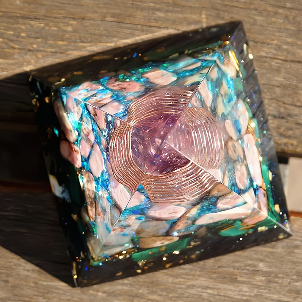 ✨Our Orgone Pyramid is designed to incorporate various concepts: Including visual arts, sacred geometry, mandalas, chakras, cosmic energy, crystal healing, astrology, magic and other systems.