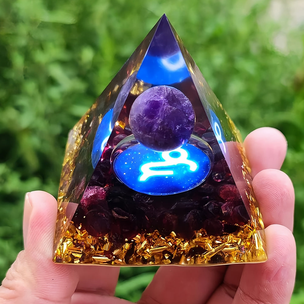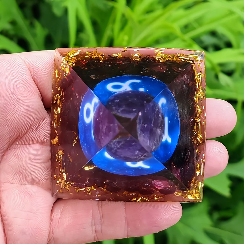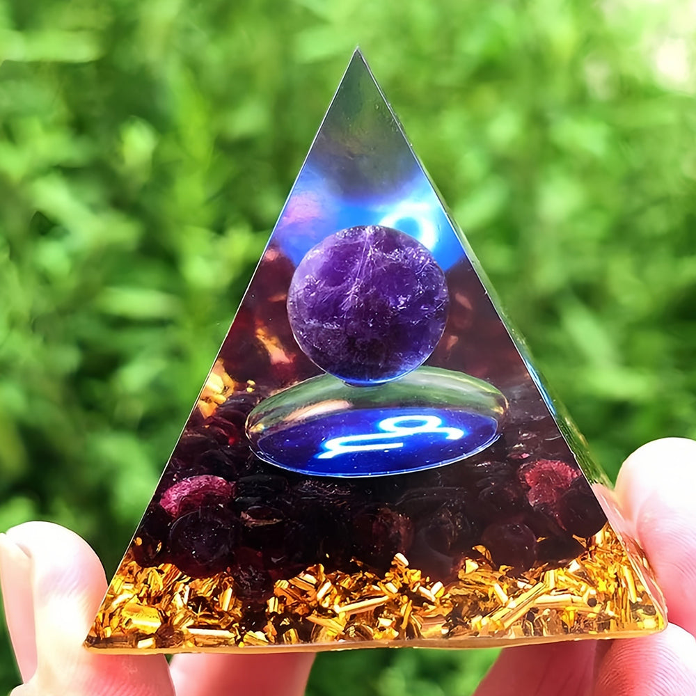 Amethyst with Garnet Capricorn Zodiac Orgone Pyramid