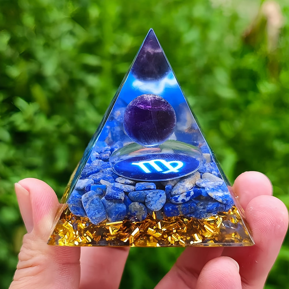 Amethyst with Lapis Lazuli Virgo Zodiac Orgone Pyramid