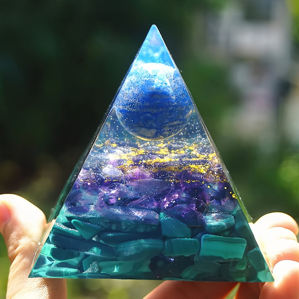 ✨Our Orgone Pyramid is designed to incorporate various concepts: Including visual arts, sacred geometry, mandalas, chakras, cosmic energy, crystal healing, astrology, magic and other systems.