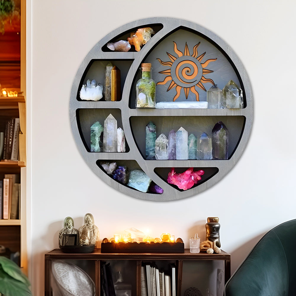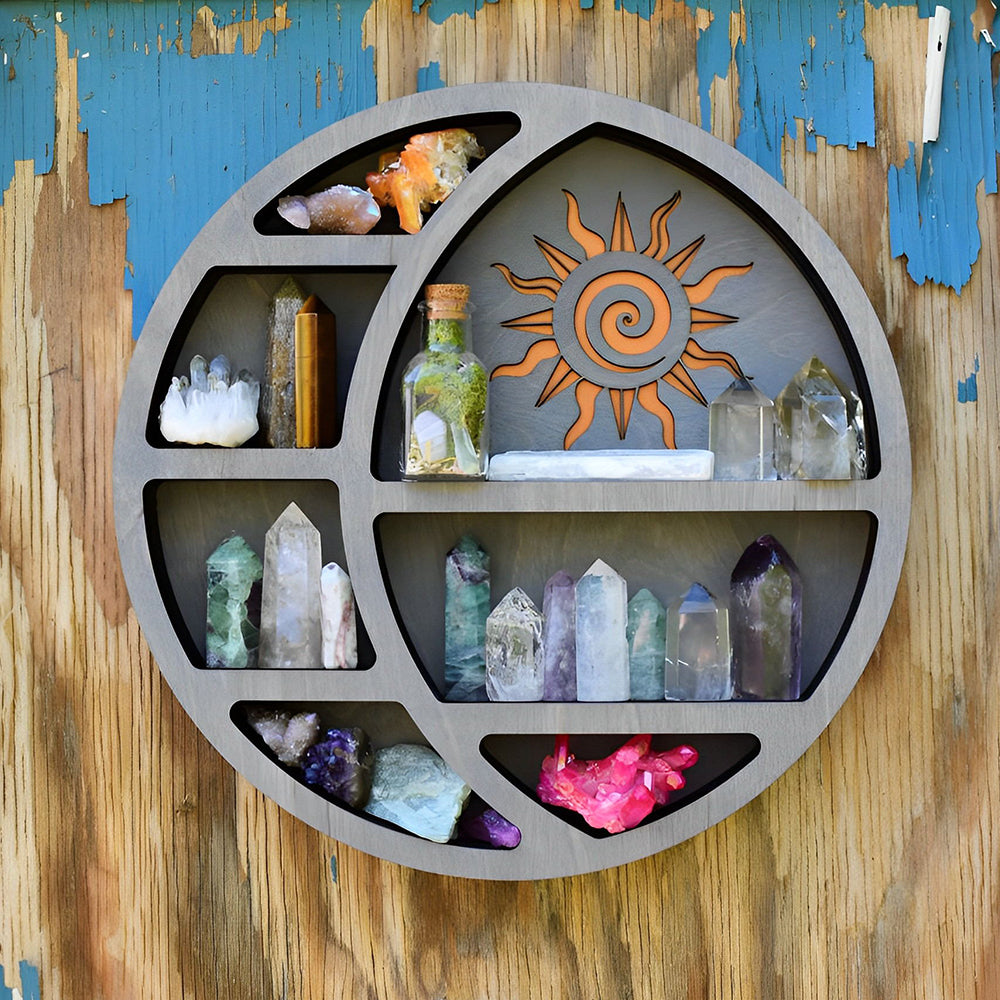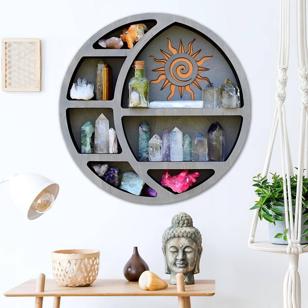 The crystal shelves can display spiritual crystals, essential oils, chakra stones, rocks, succulents, candles, gothic witch hippie spirits, or any other gothic and zen decorations.