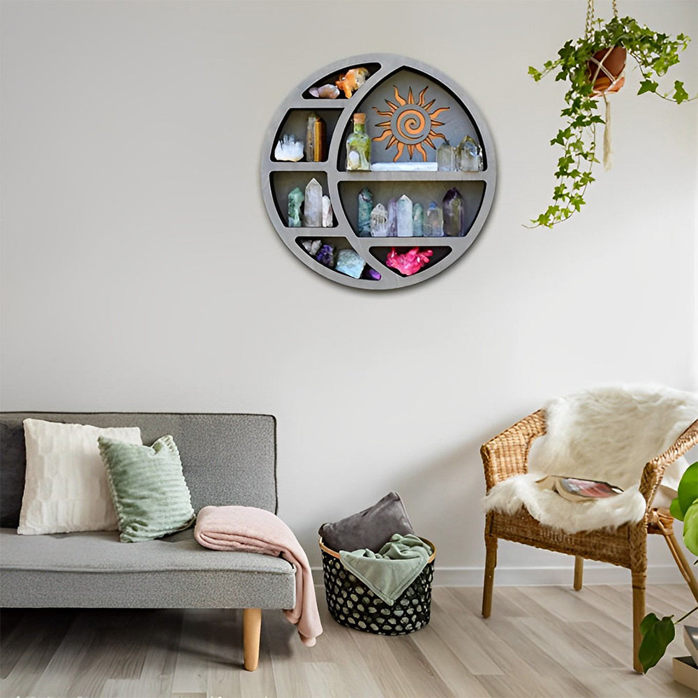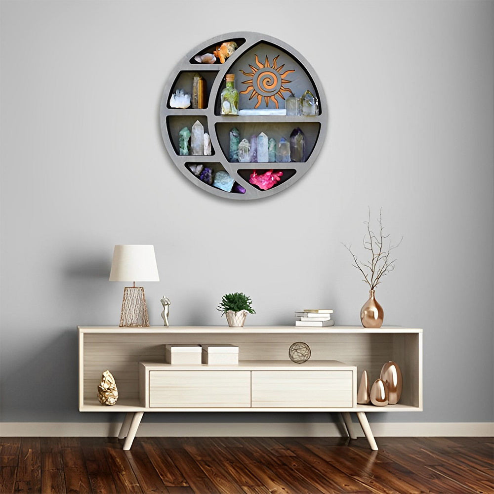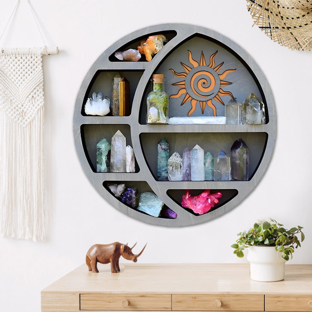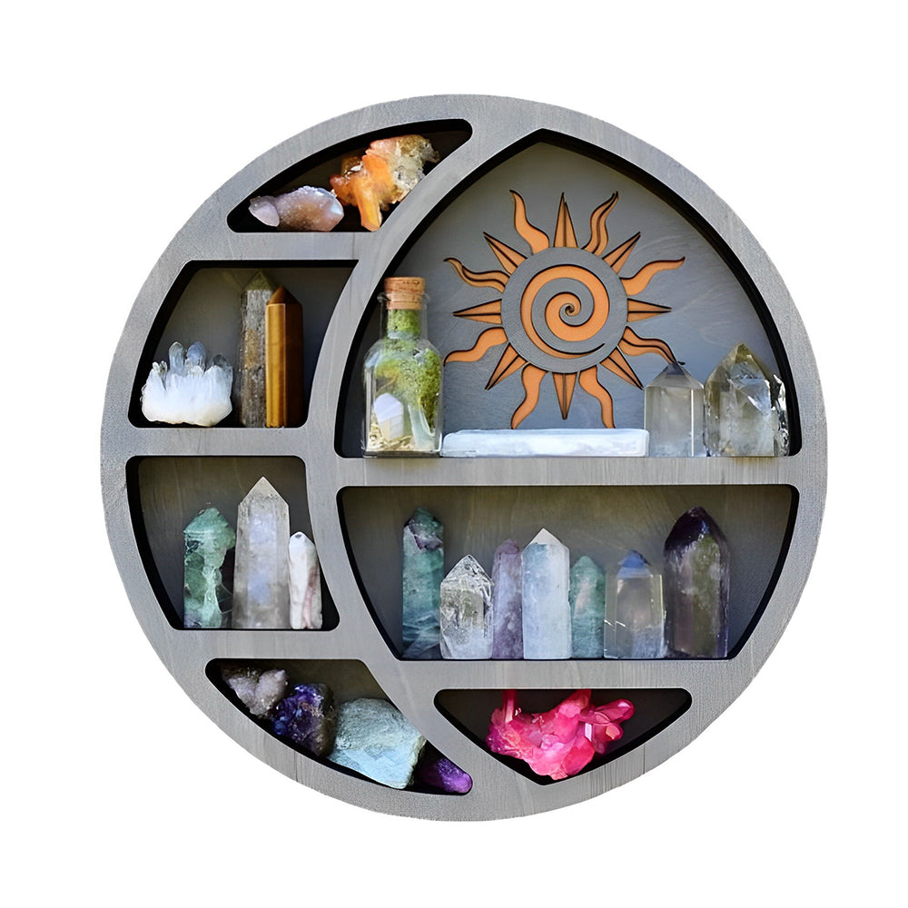 The crystal shelves can display spiritual crystals, essential oils, chakra stones, rocks, succulents, candles, gothic witch hippie spirits, or any other gothic and zen decorations.