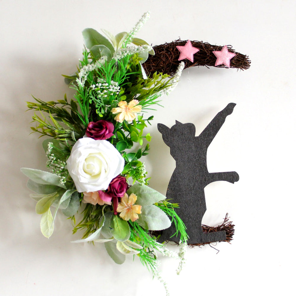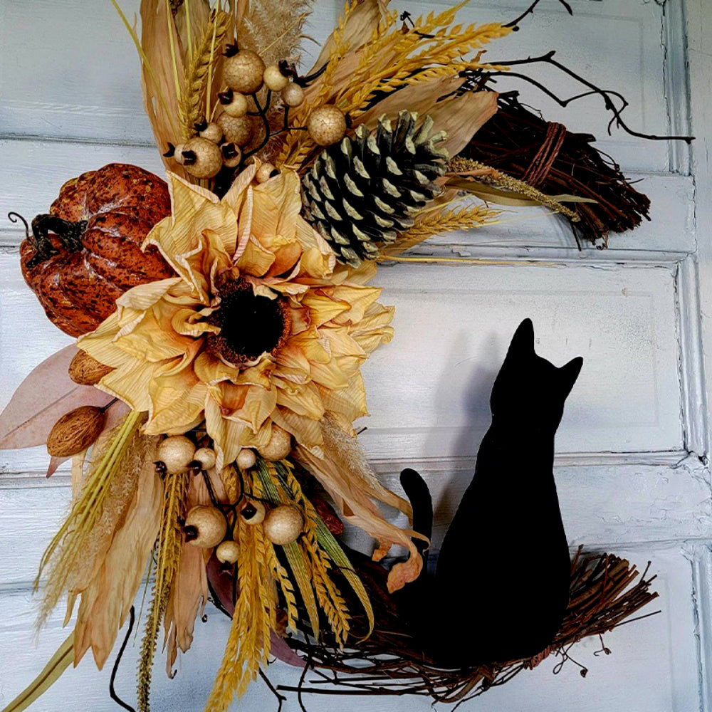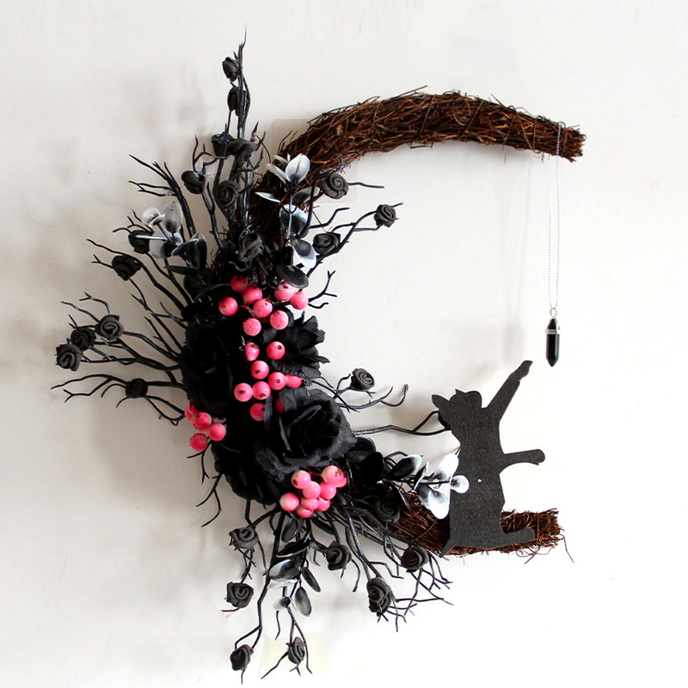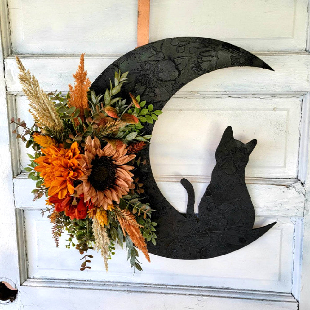 Black Cat and Moon Halloween Door Wreaths Decors