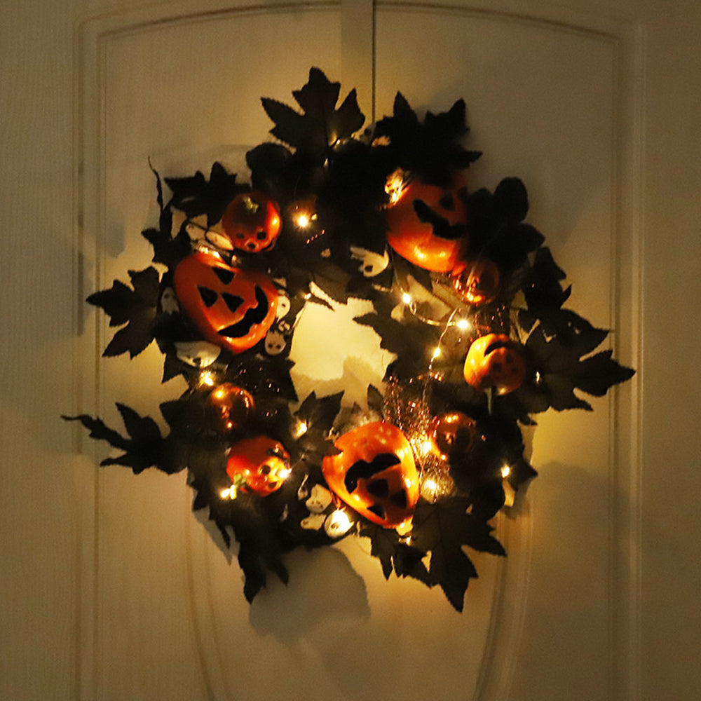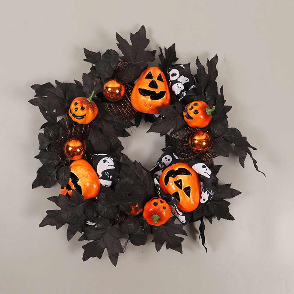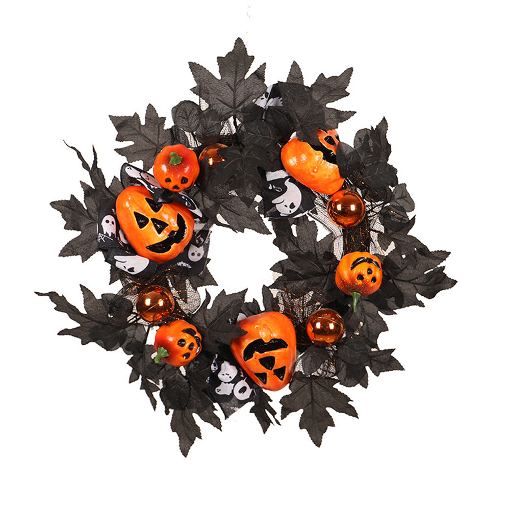 Black Maple Leaf Pumpkin Halloween Door Wreaths Decors