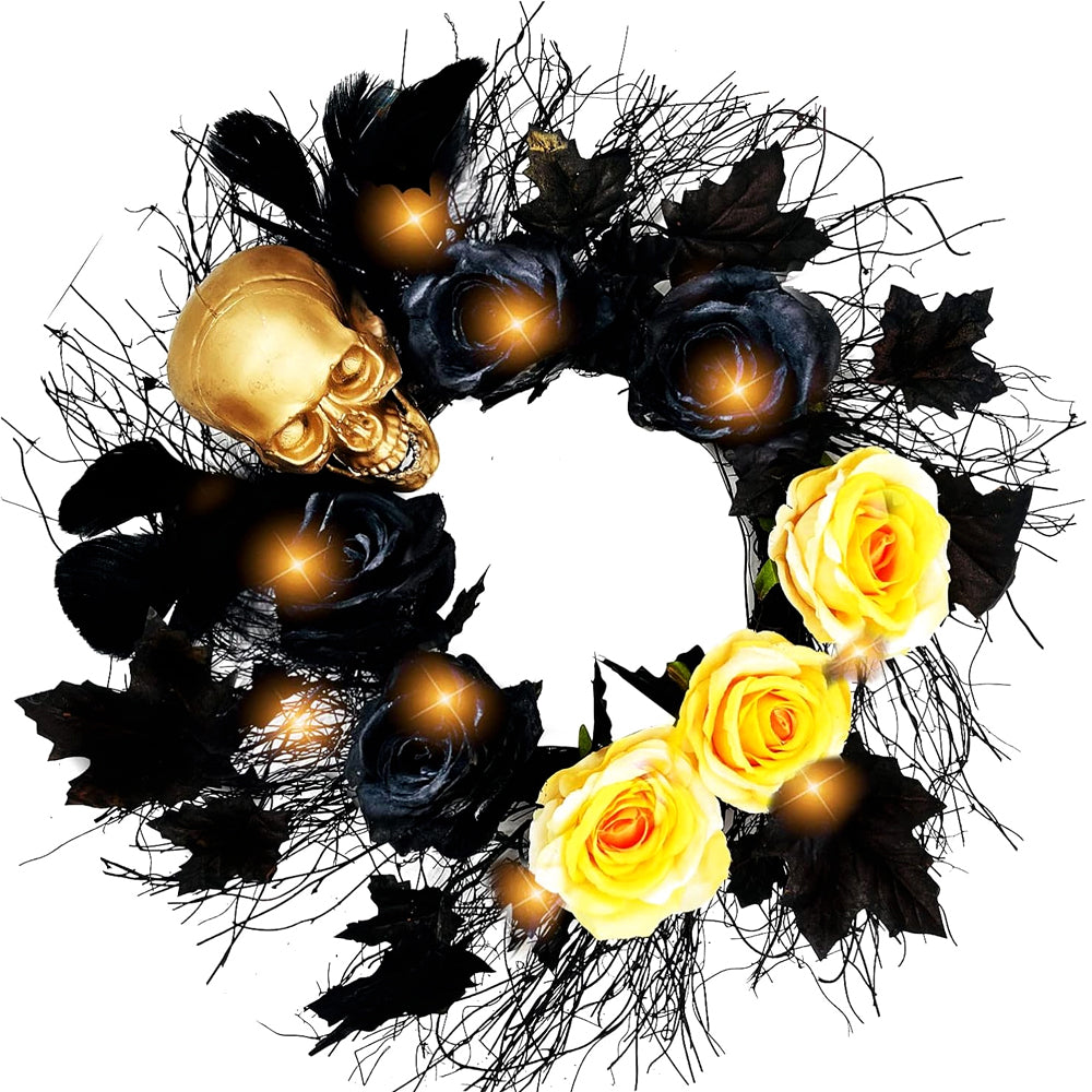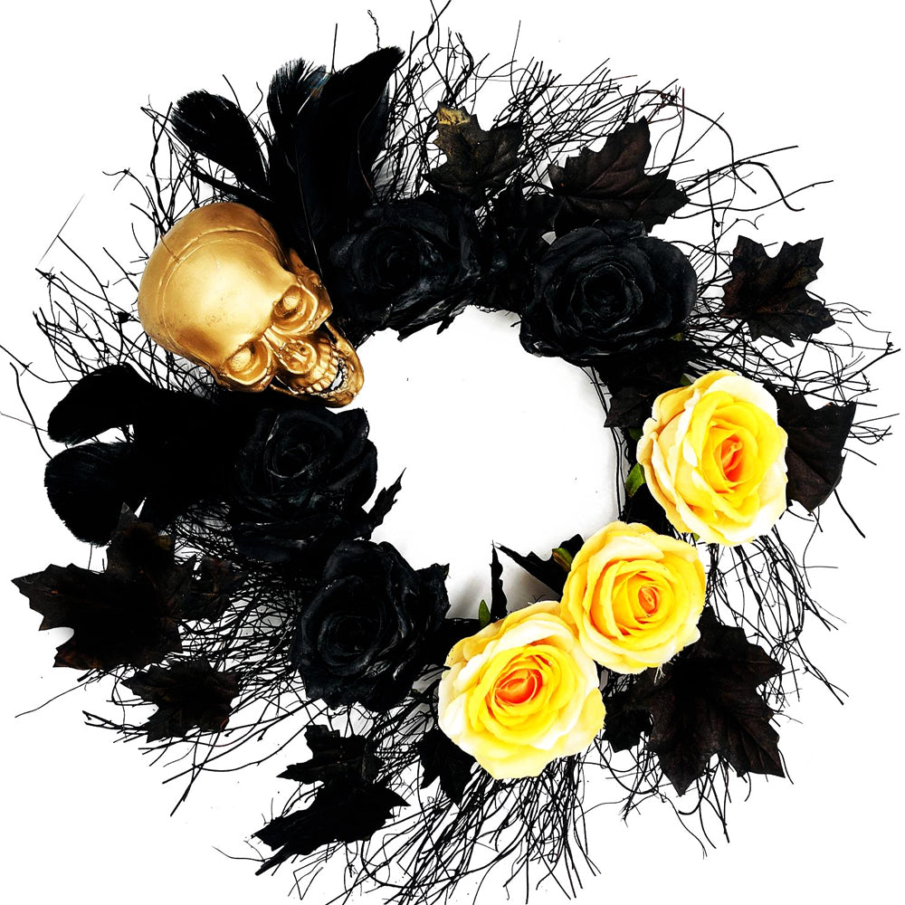 Skull and Yellow Rose Halloween Door Wreaths Decors