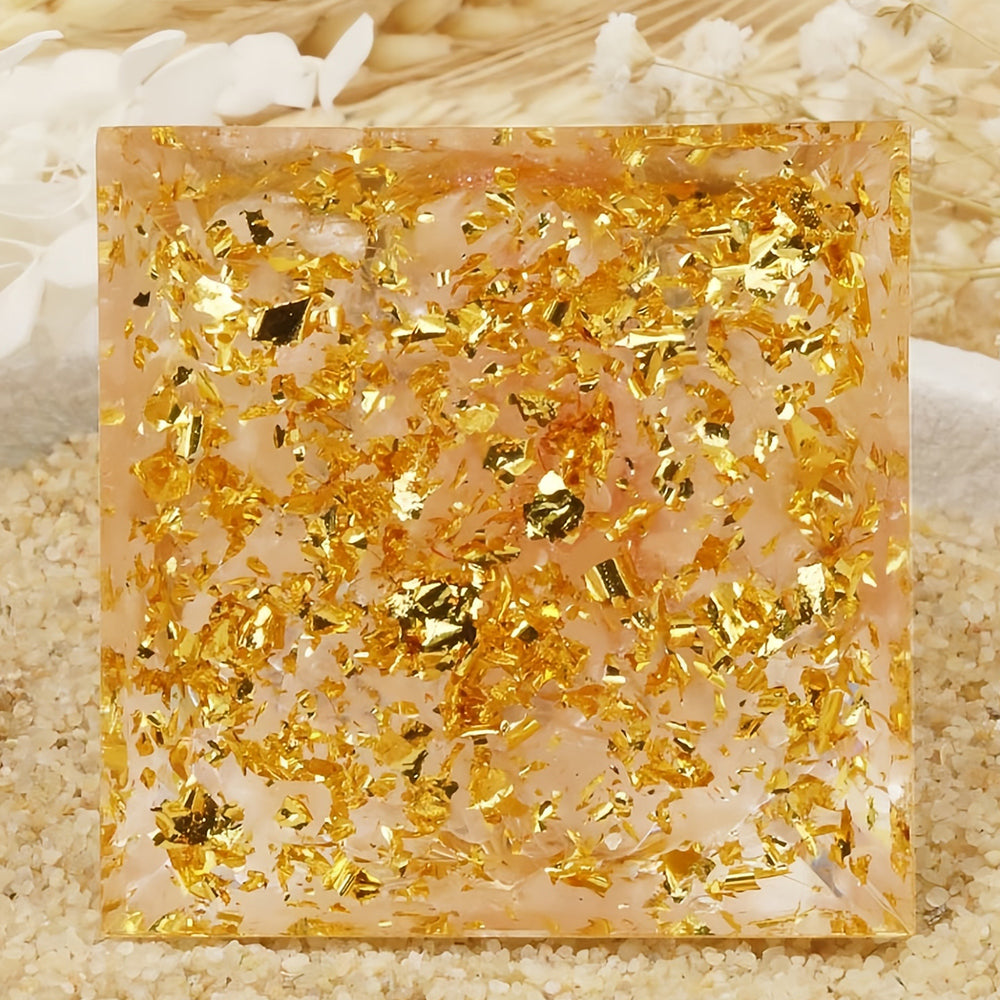 ⭐ The Orgone Pyramid features a rich blend of gemstones and materials: Including Pyrite, Shungite, Copper, Iron, Resin, Hydrocarbons, Scrap Metal, Rose Quartz, Garnet, Imported Mineral, Wavelithium Borohydride, Gold foil, Quartz, Vibration Frequency, Energy Symbols, Pieces of Metal, Brass, Copper, Crystals Malachite, Clear Quartz, Black Tourmaline, Polyester Resin, Aluminum, Steel, Copper Tube, Cubit SBB Blue Coil, Cubit Hook, Crystal Quartz, Selenite, Himalayan salt, Magnesium Carbonate, Beach Sand, Tensor Rings and Higher Dimension Energy.