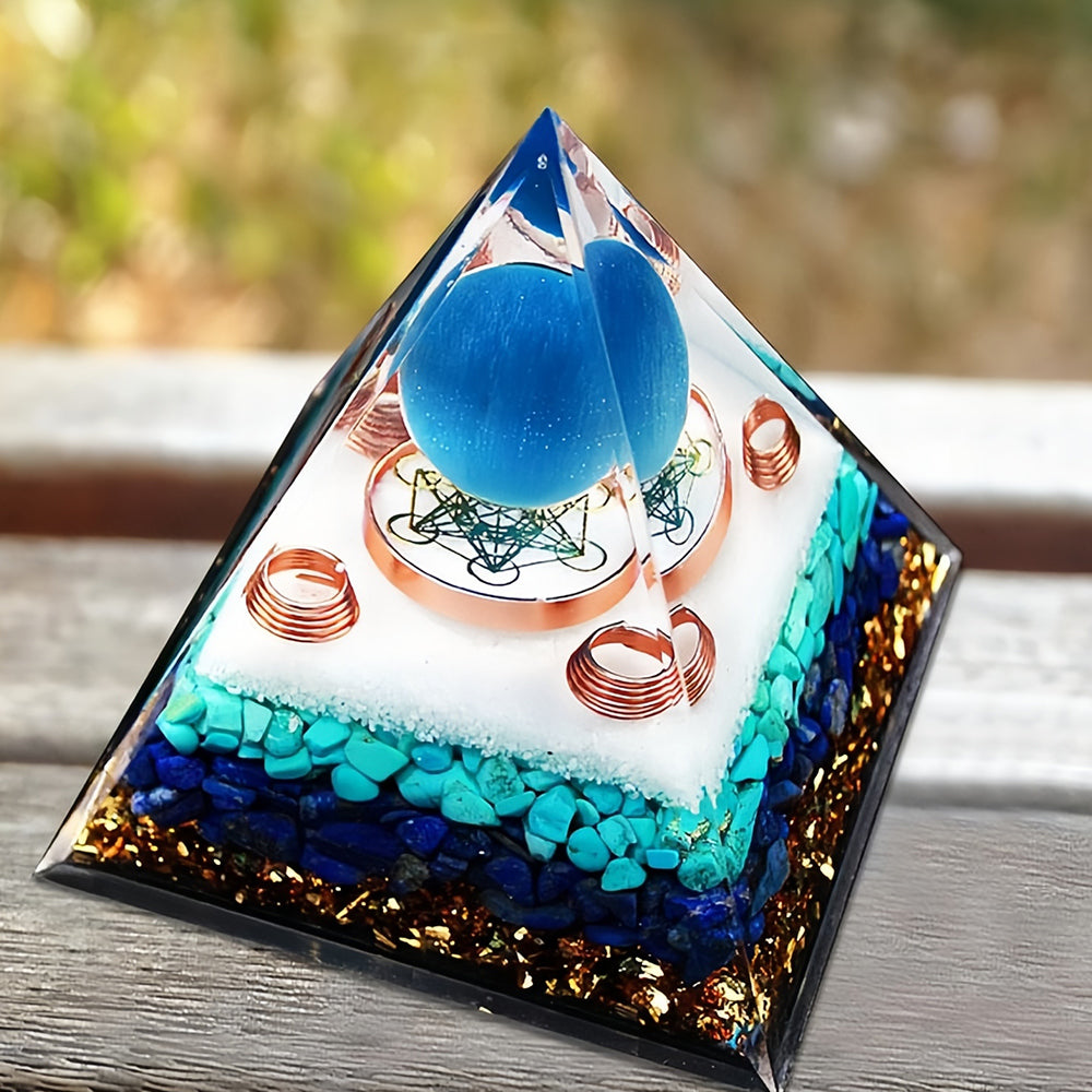 Turquoise Lapis Lazuli Metatron's Cube Symbol Orgone Pyramid