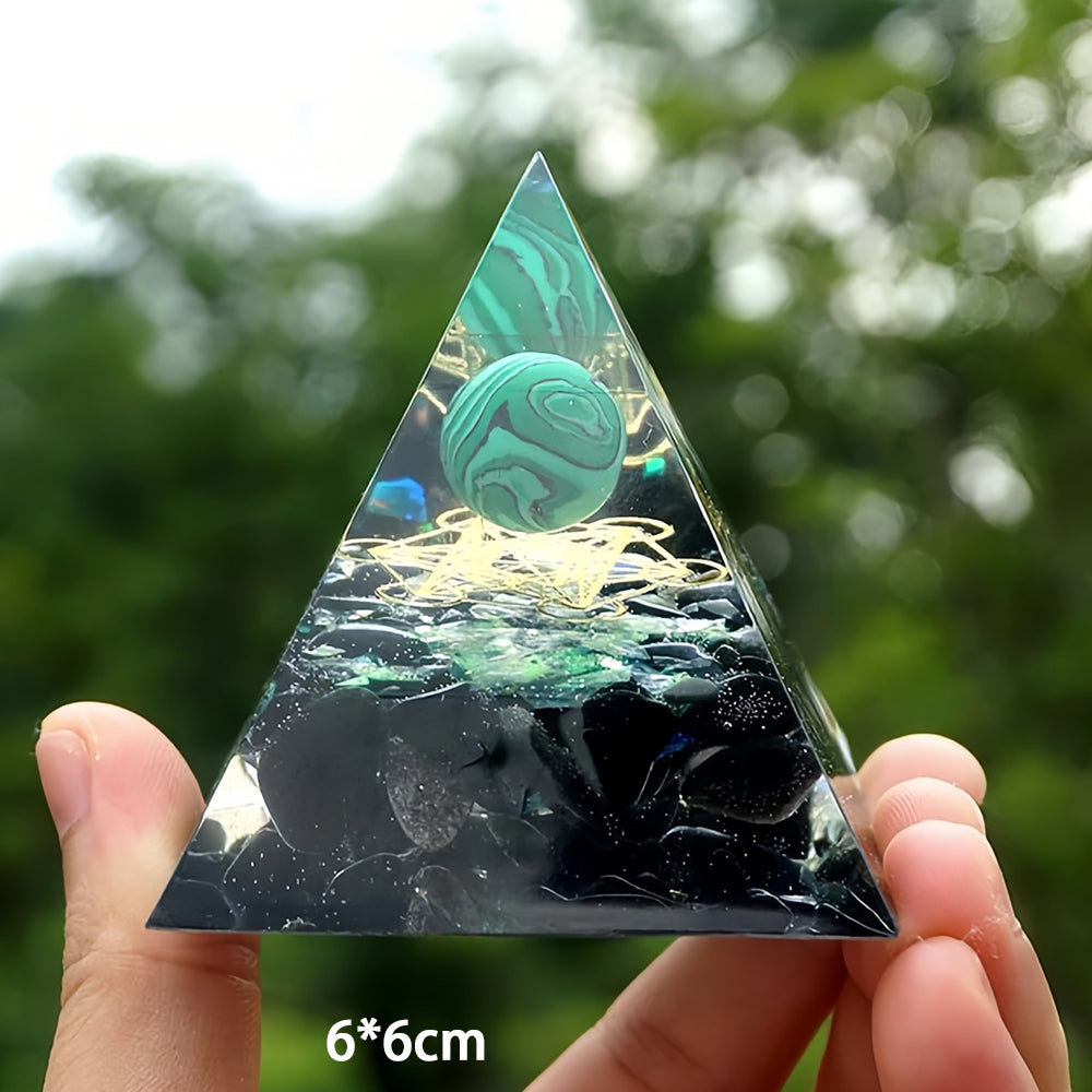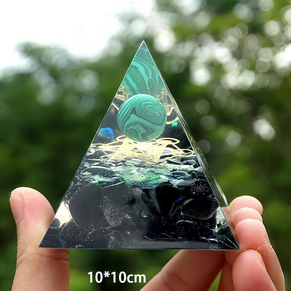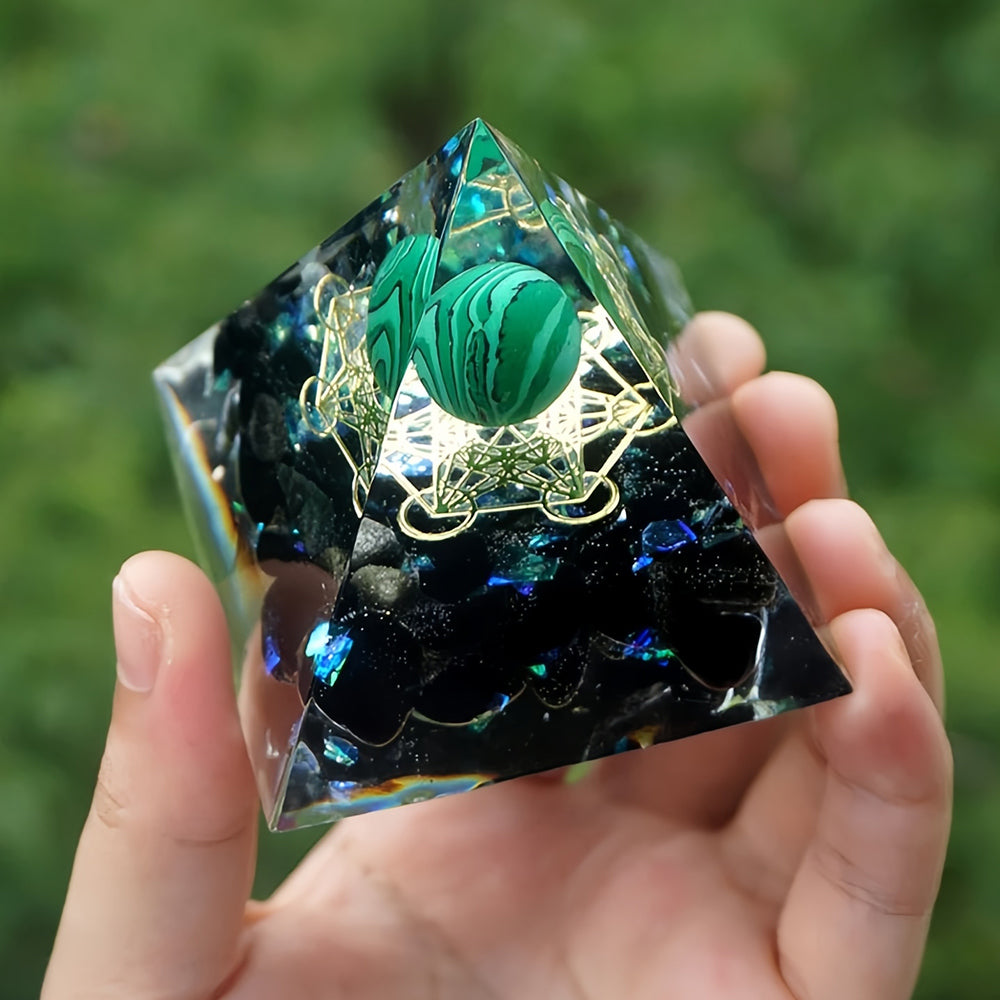 Metatron's Cube Orgone Pyramid Malachite Crystal Sphere With Obsidian