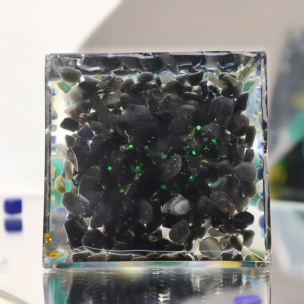 ⭐ The Orgone Pyramid features a rich blend of gemstones and materials: Including Pyrite, Shungite, Copper, Iron, Resin, Hydrocarbons, Scrap Metal, Rose Quartz, Garnet, Imported Mineral, Wavelithium Borohydride, Gold foil, Quartz, Vibration Frequency, Energy Symbols, Pieces of Metal, Brass, Copper, Crystals Malachite, Clear Quartz, Black Tourmaline, Polyester Resin, Aluminum, Steel, Copper Tube, Cubit SBB Blue Coil, Cubit Hook, Crystal Quartz, Selenite, Himalayan salt, Magnesium Carbonate, Beach Sand, Tensor Rings and Higher Dimension Energy.