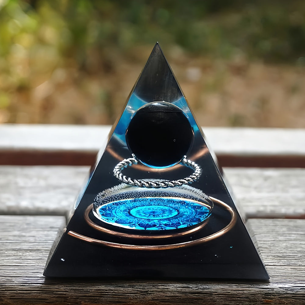 Obsidian Crystal Sphere With Copper Circle Orgone Pyramid
