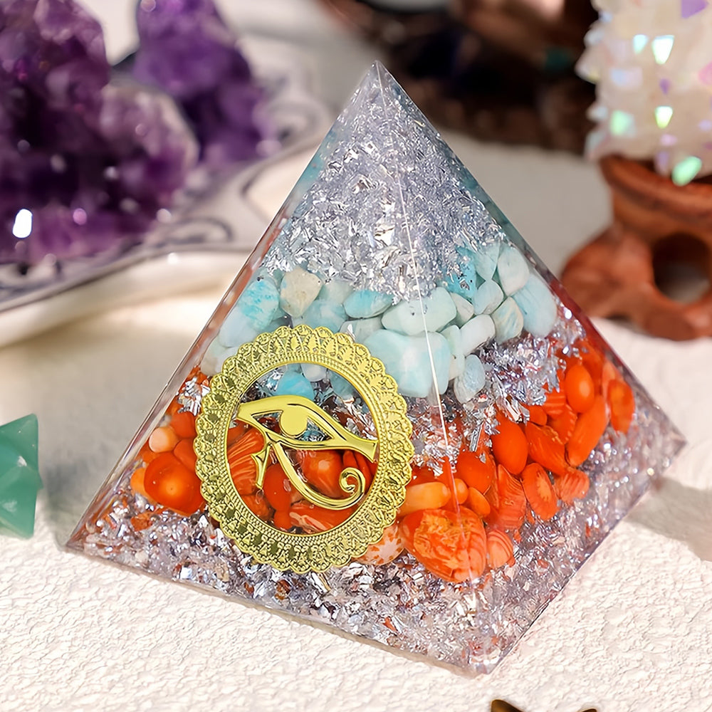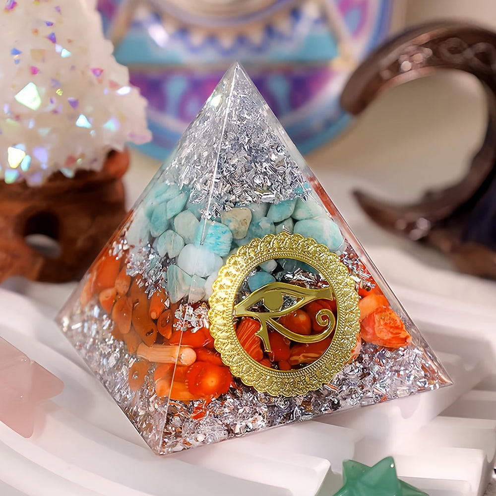 Amazonite Red Coral Eye Of Horus Orgone Pyramid