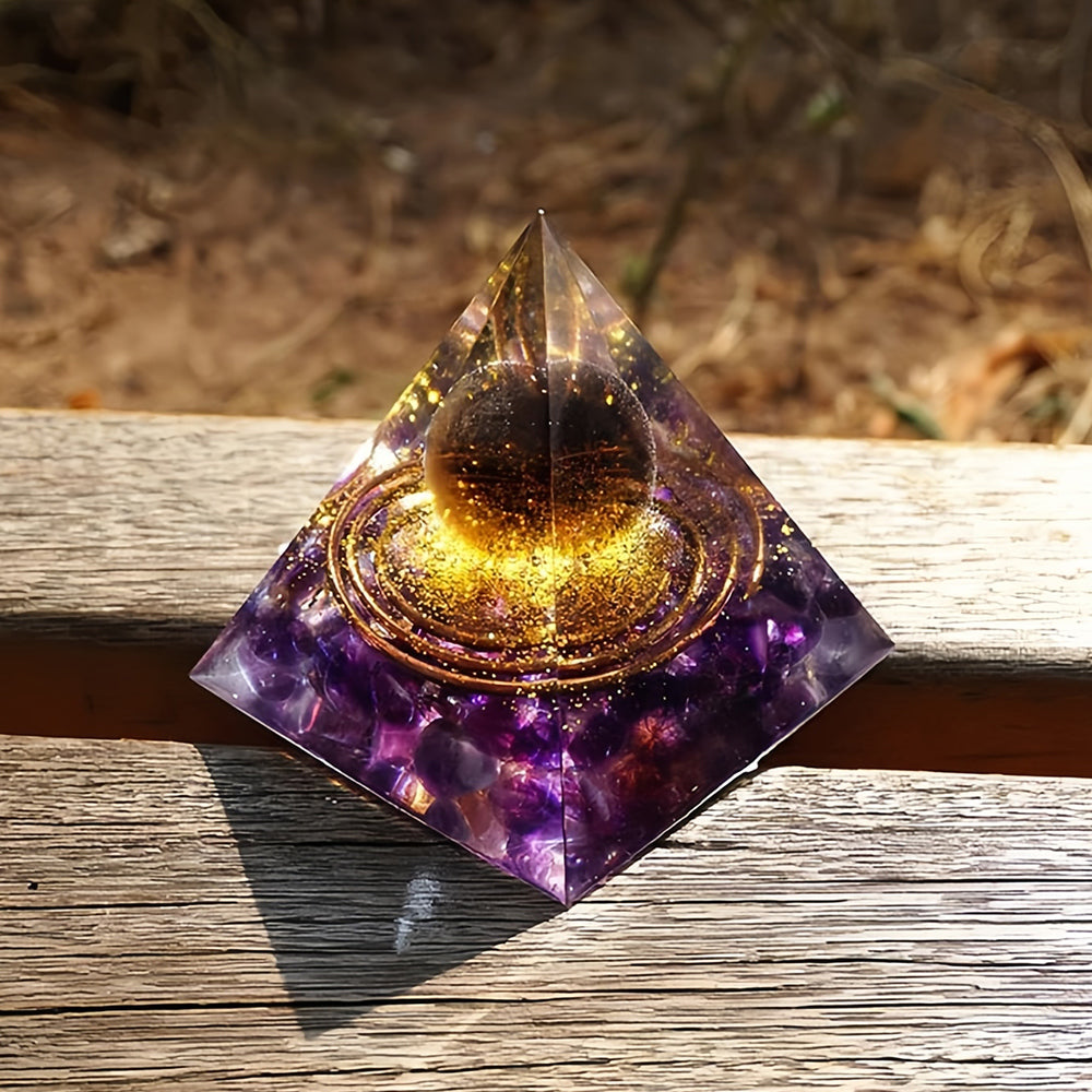 Tiger Eye Crystal Ball with Amethyst Orgone Pyramid