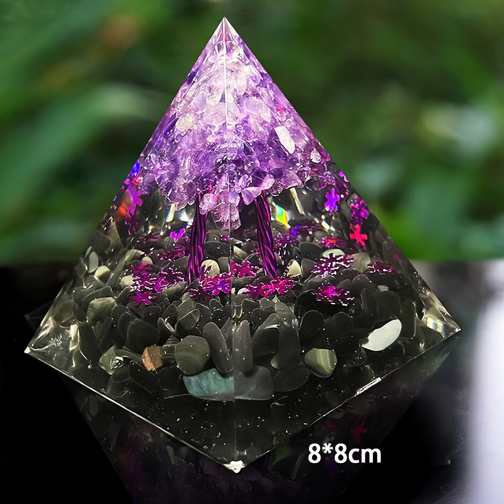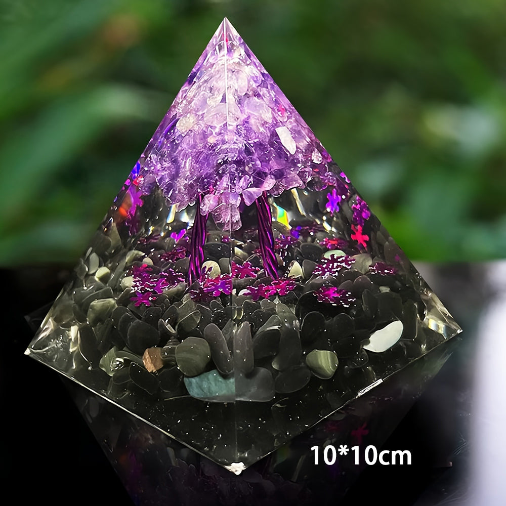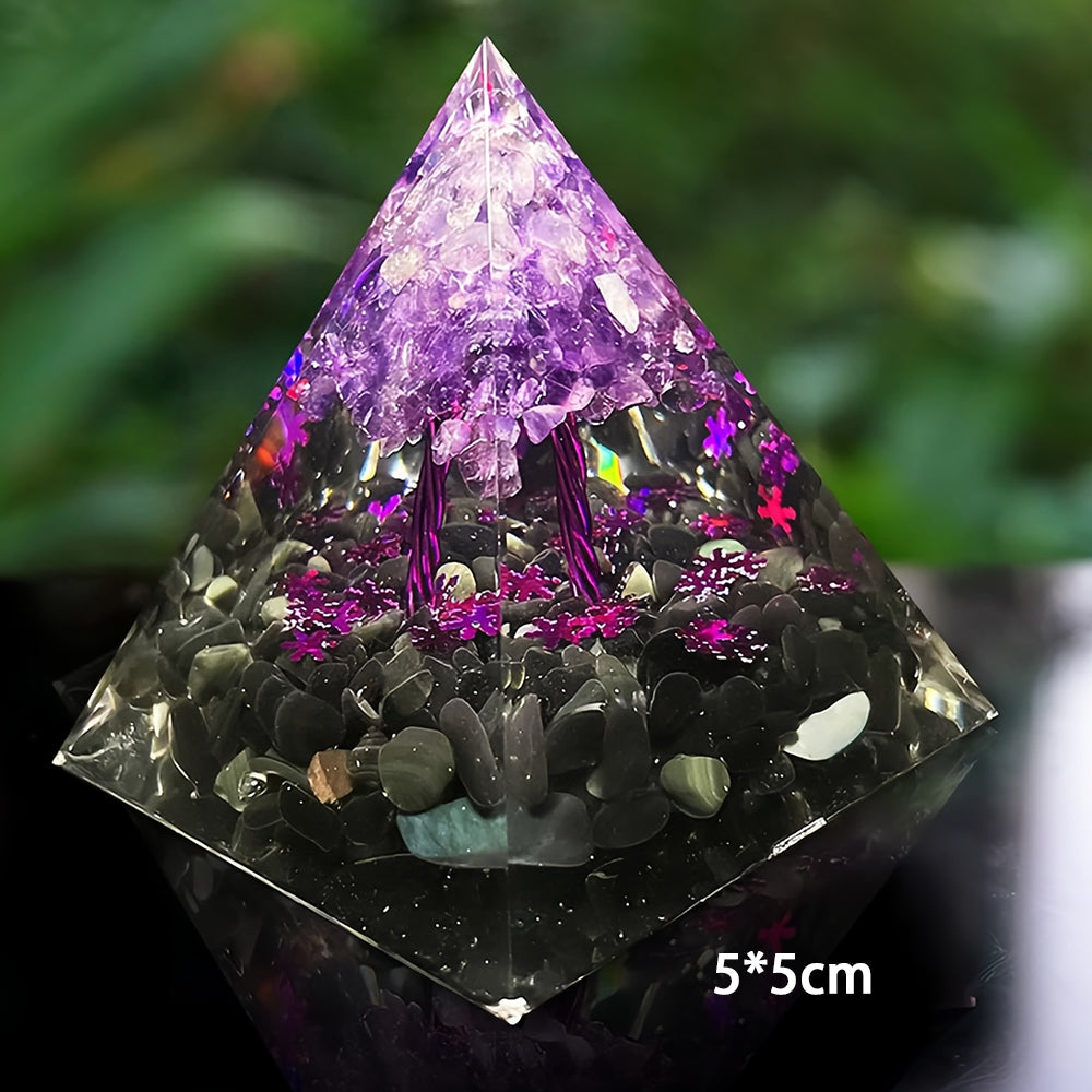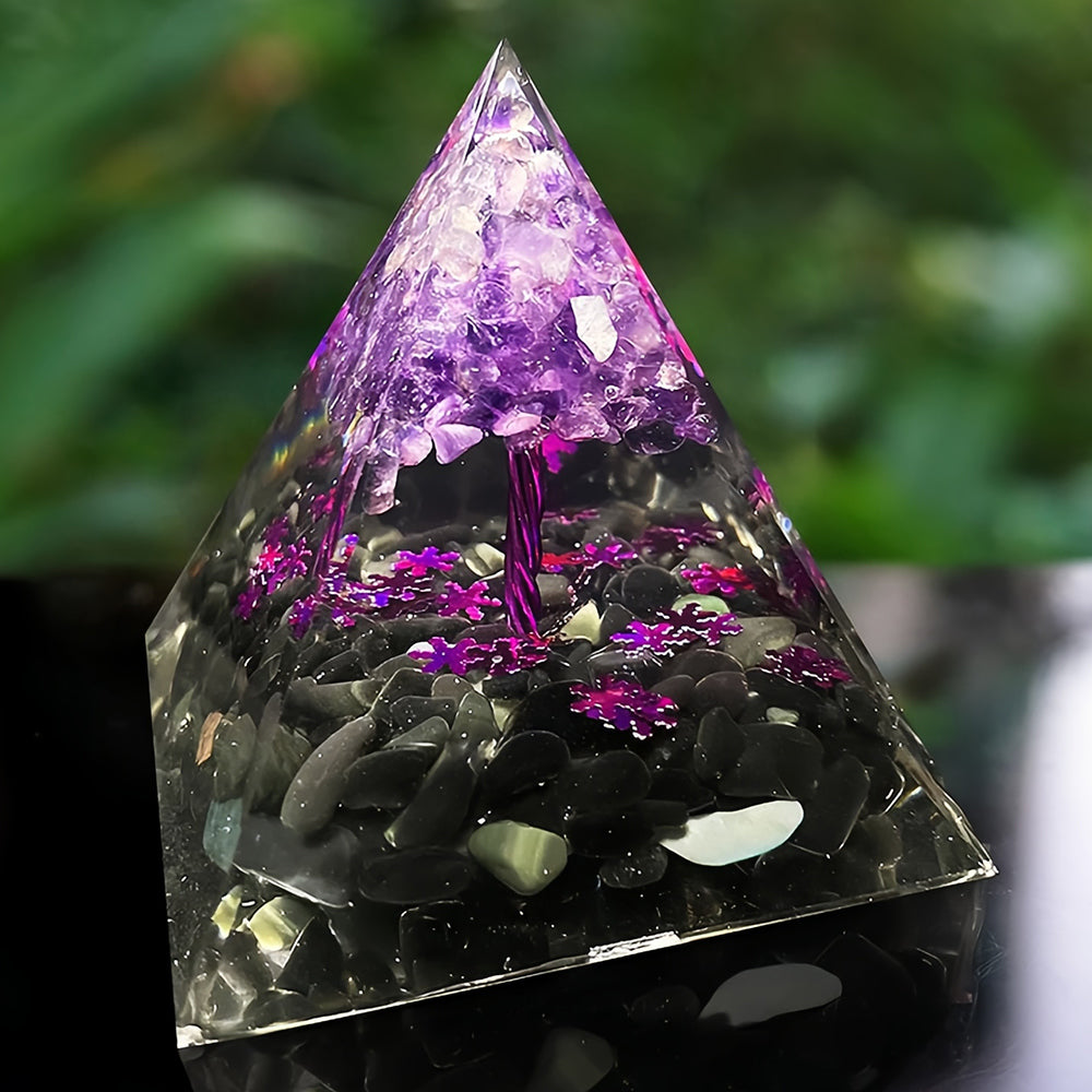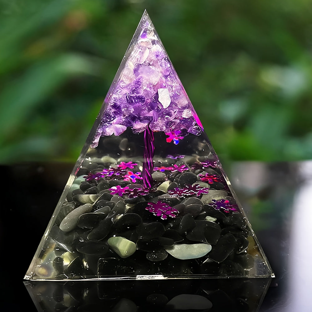 Amethyst Obsidian Tree Of Life Orgone Pyramid