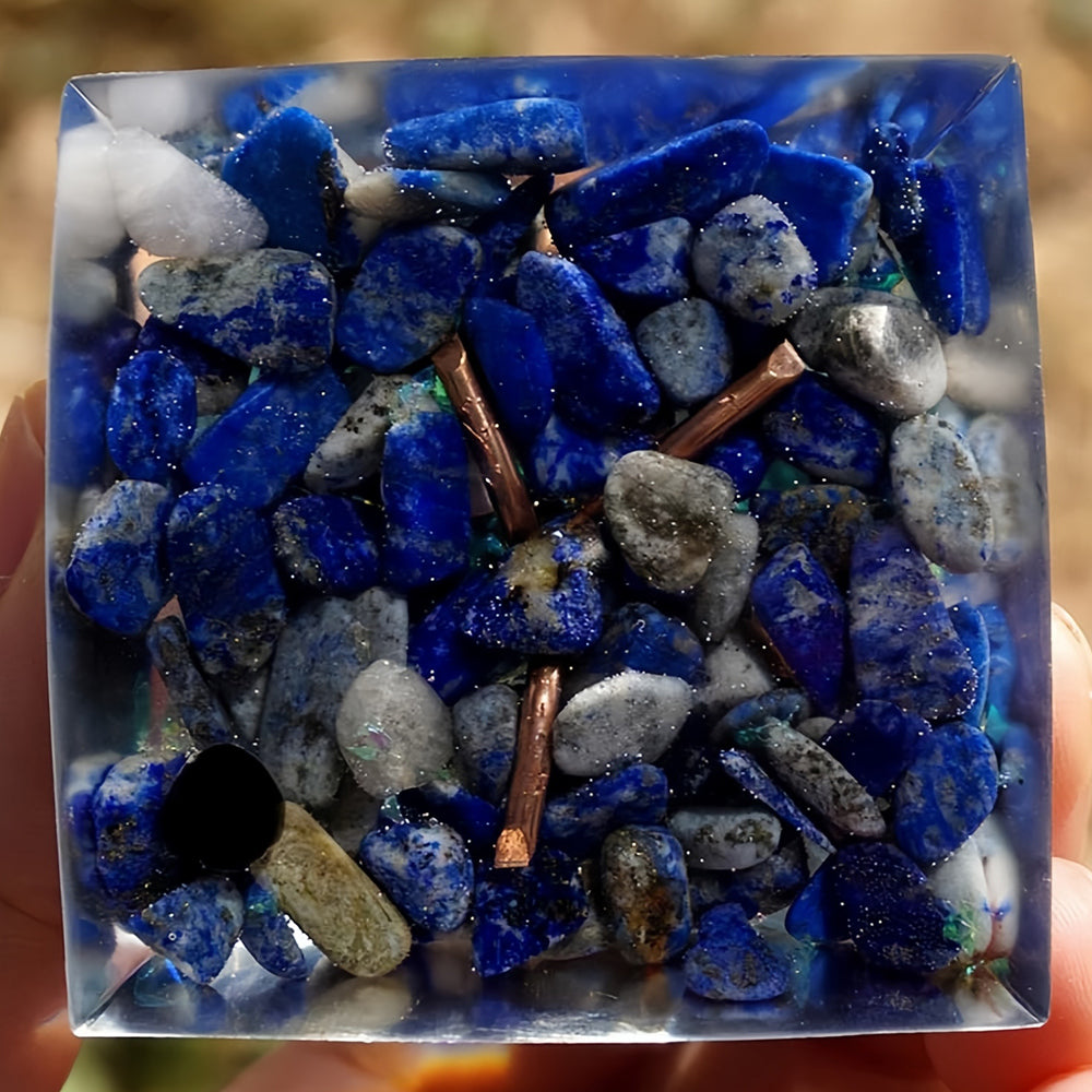 ⭐ The Orgone Pyramid features a rich blend of gemstones and materials: Including Pyrite, Shungite, Copper, Iron, Resin, Hydrocarbons, Scrap Metal, Rose Quartz, Garnet, Imported Mineral, Wavelithium Borohydride, Gold foil, Quartz, Vibration Frequency, Energy Symbols, Pieces of Metal, Brass, Copper, Crystals Malachite, Clear Quartz, Black Tourmaline, Polyester Resin, Aluminum, Steel, Copper Tube, Cubit SBB Blue Coil, Cubit Hook, Crystal Quartz, Selenite, Himalayan salt, Magnesium Carbonate, Beach Sand, Tensor Rings and Higher Dimension Energy.