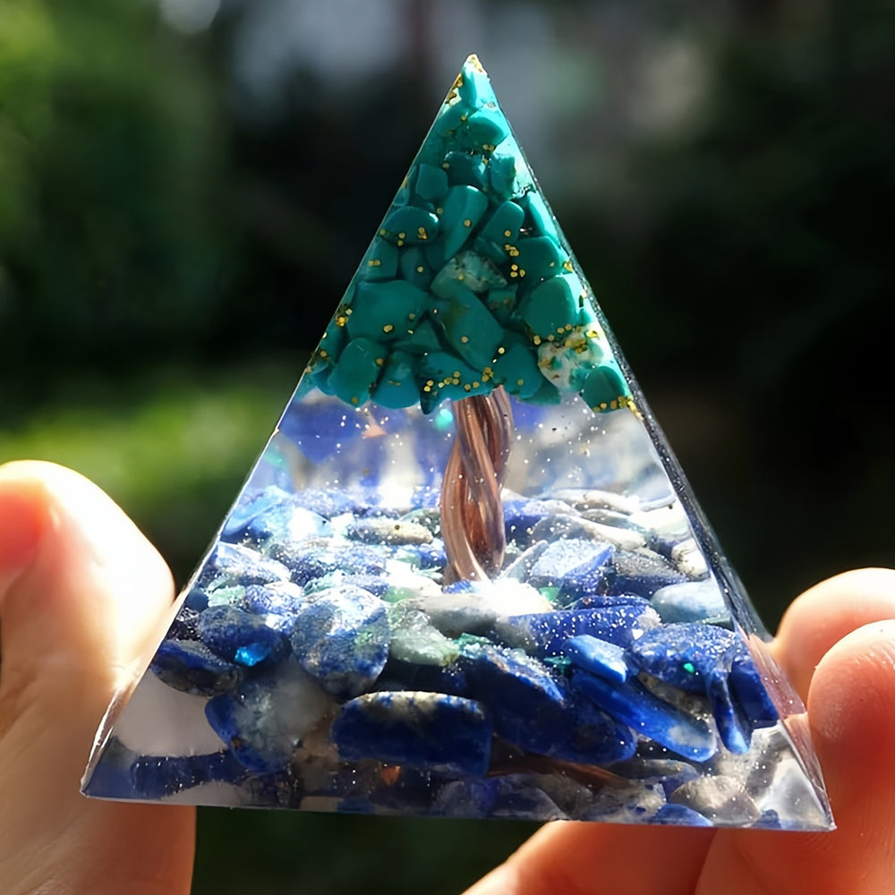 Lapis Lazuli With Turquoise Tree Of Life Orgone Pyramid
