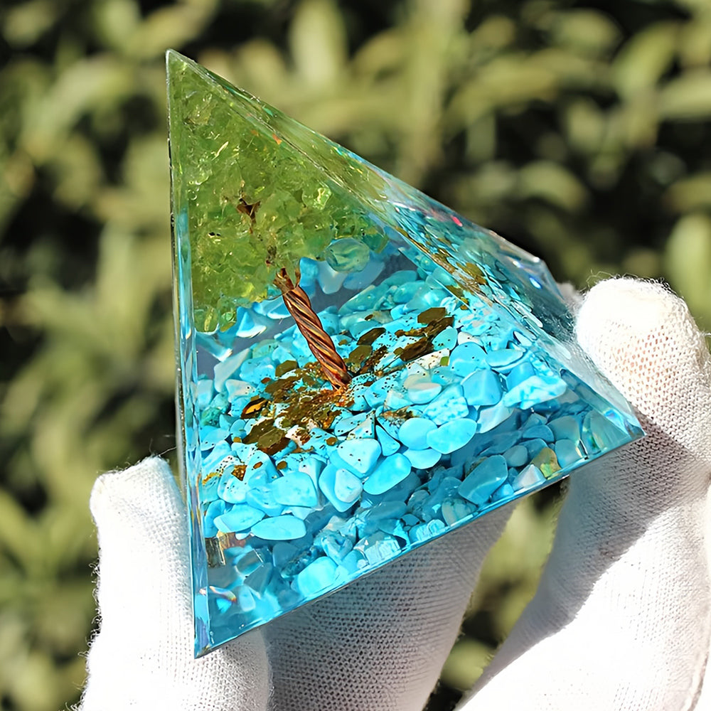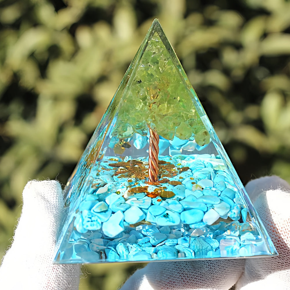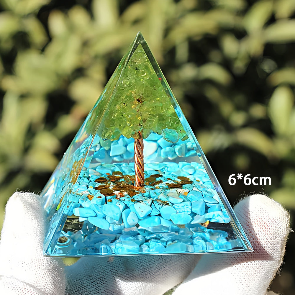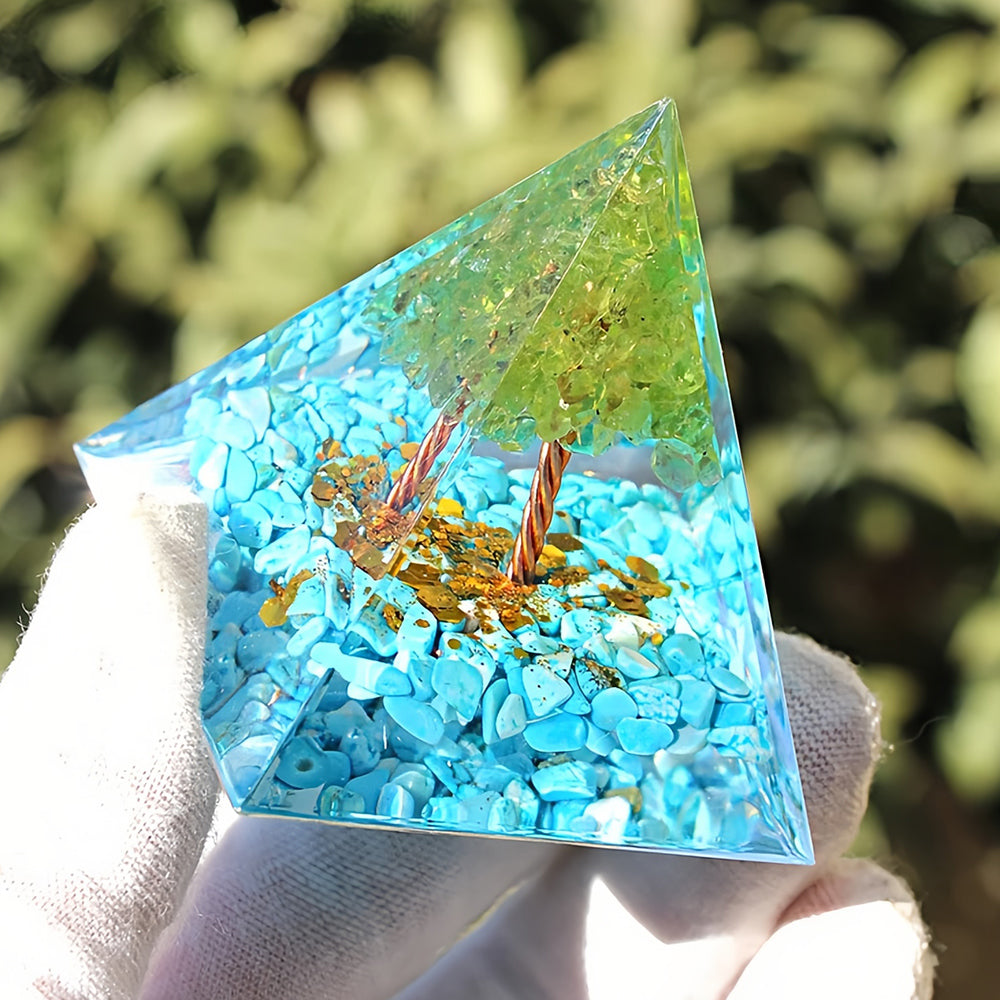 Peridot Amazonite Tree of Life Orgone Pyramid