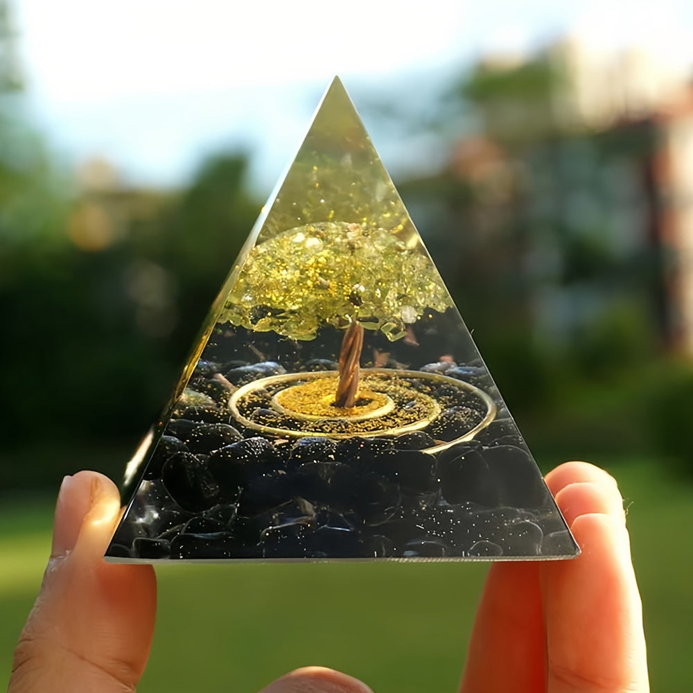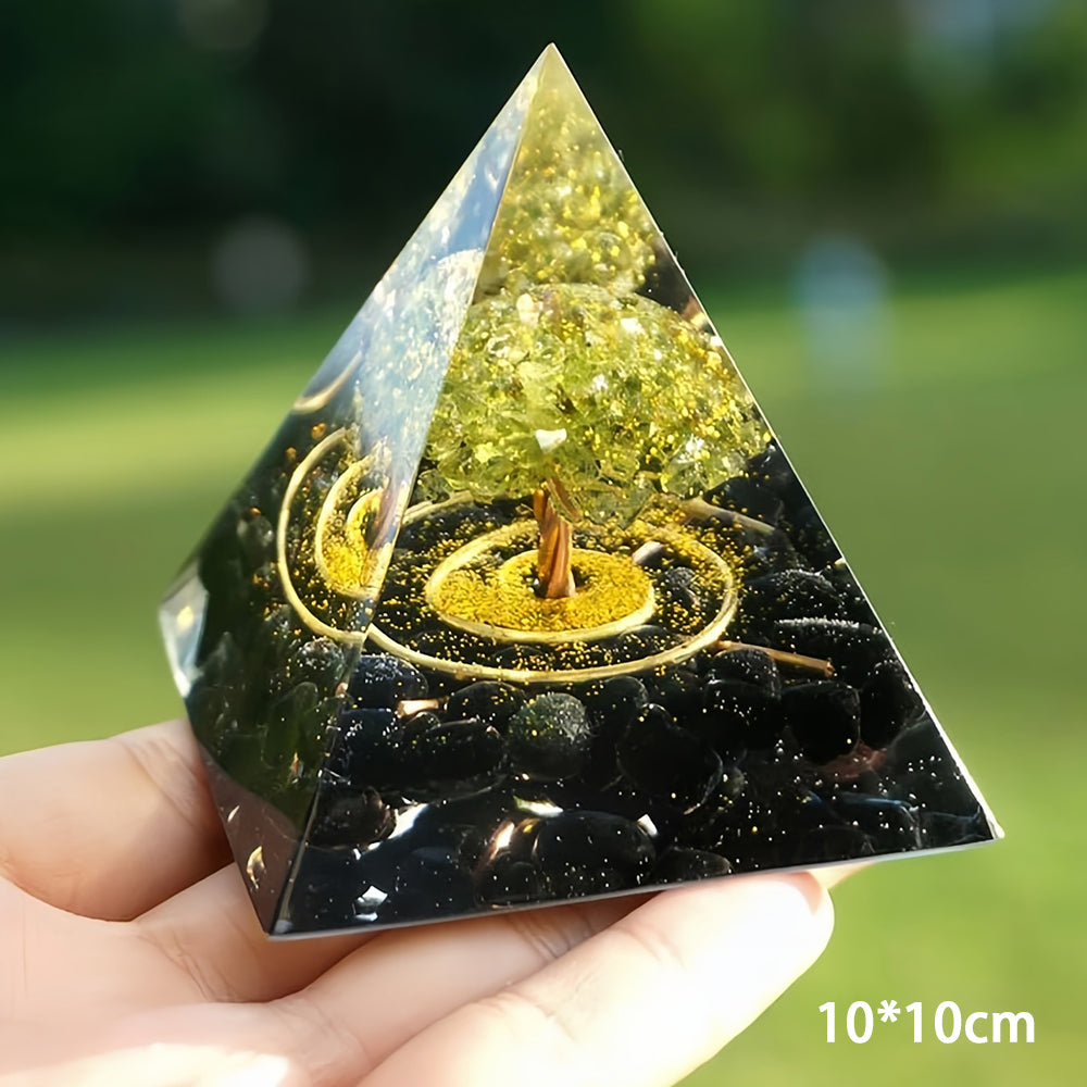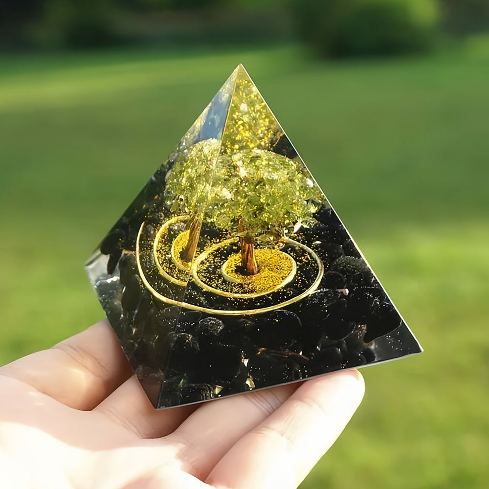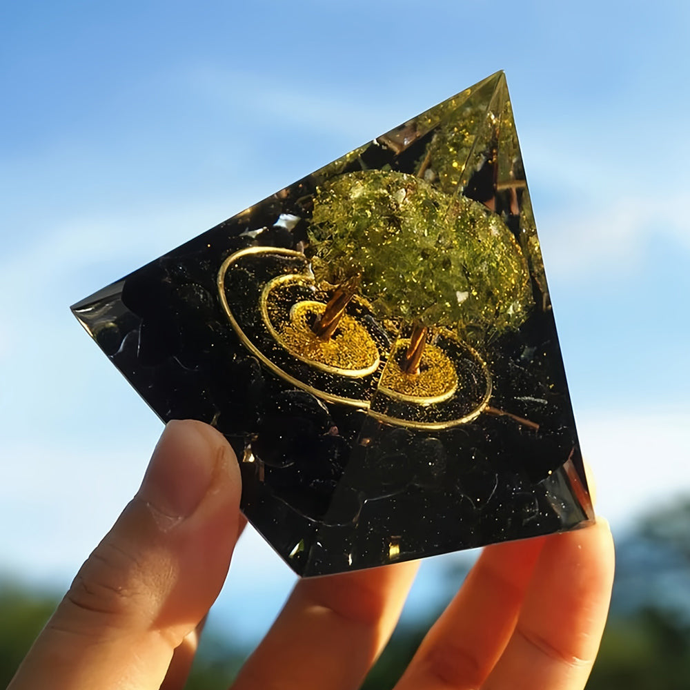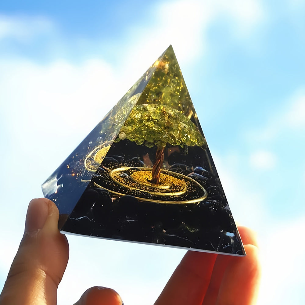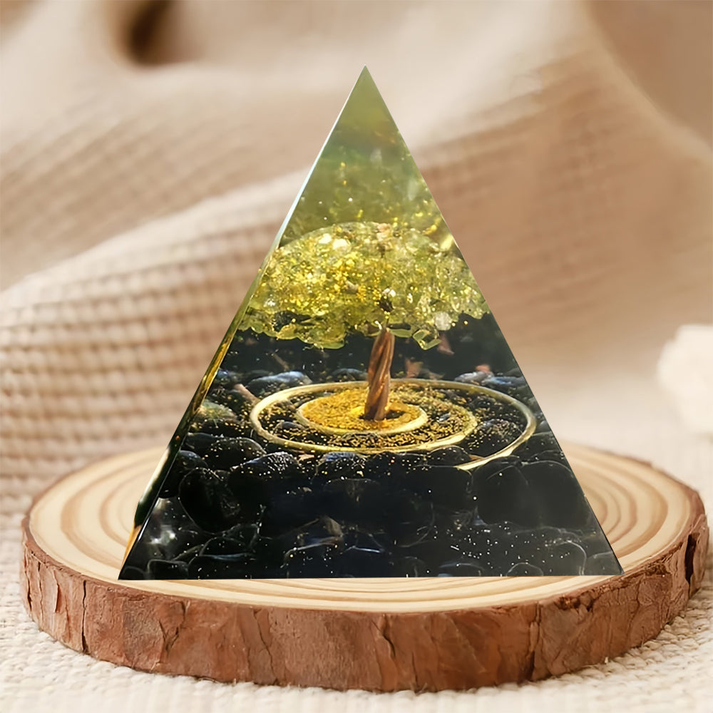 Peridot With Obsidian Tree Of Life Reiki Orgone Pyramid