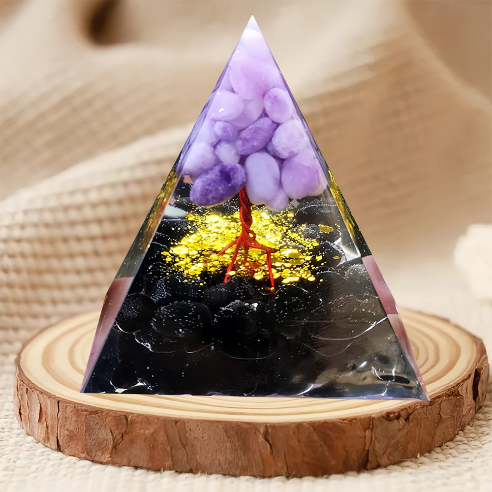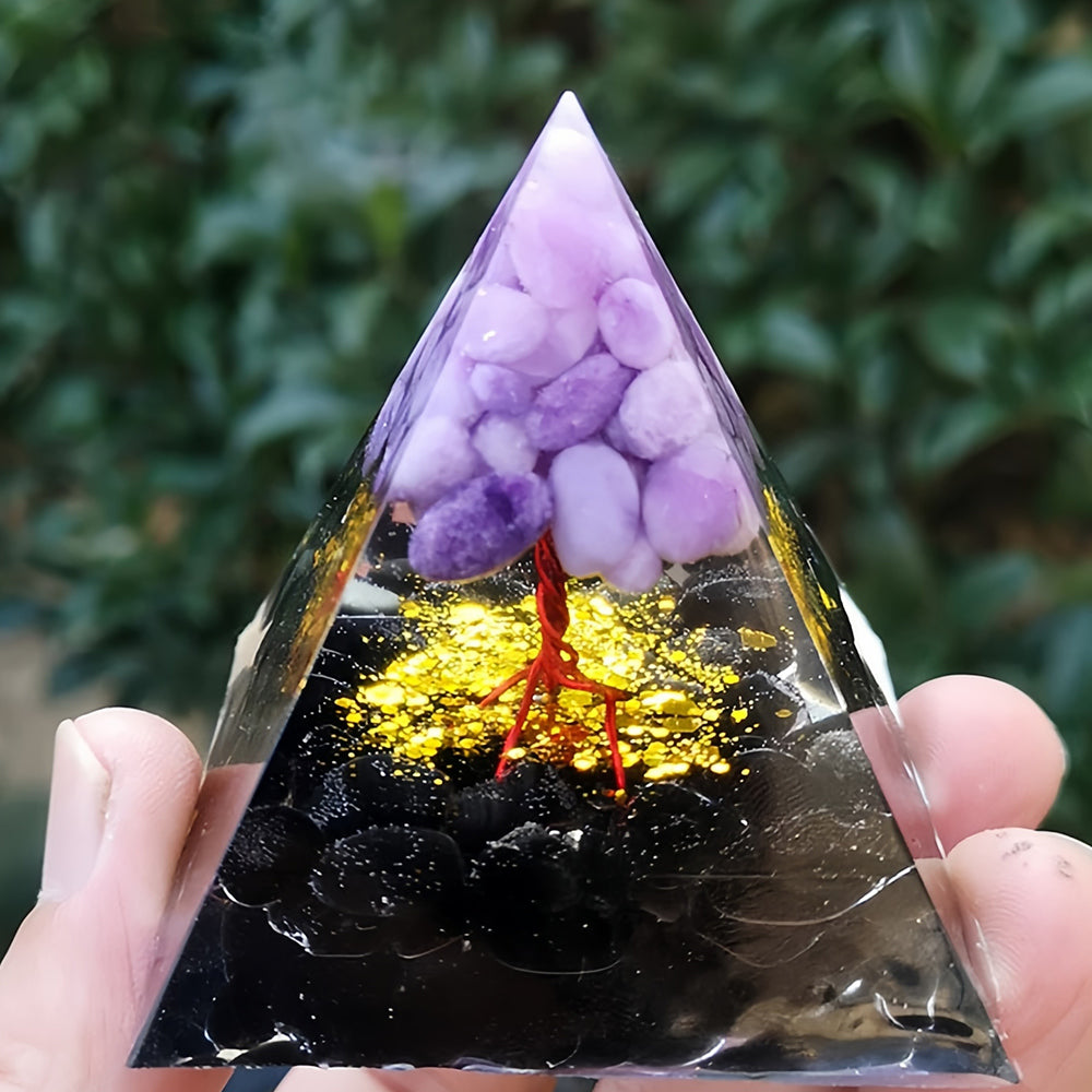 Purple Jade Obsidian Tree Of Life Orgone Pyramid