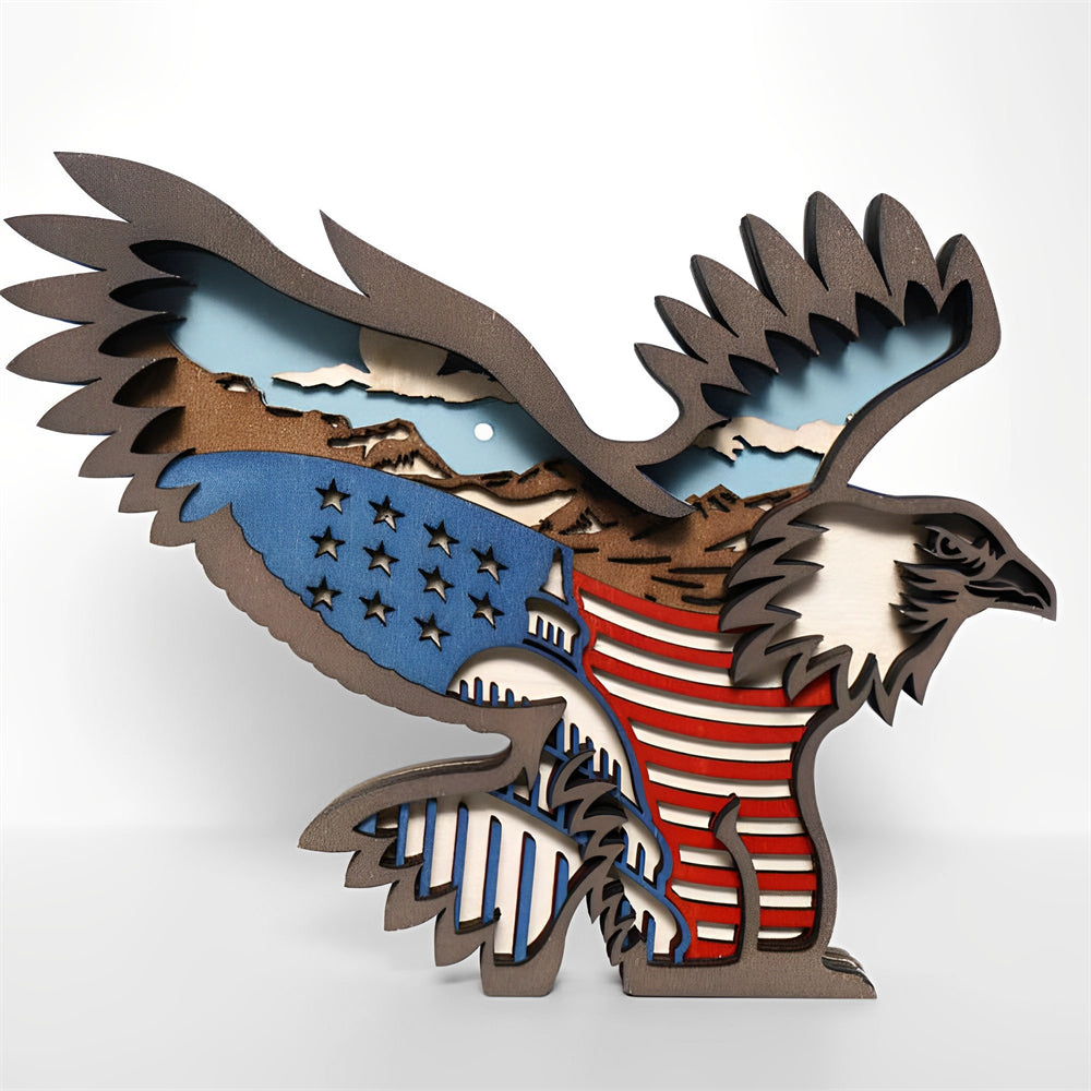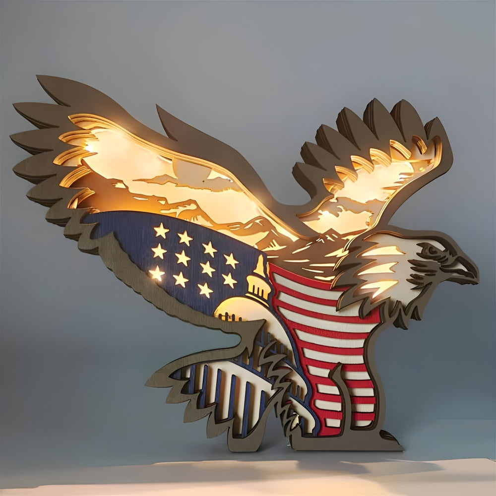 American Flag Bald Eagle 3D Wooden Carved Ornaments