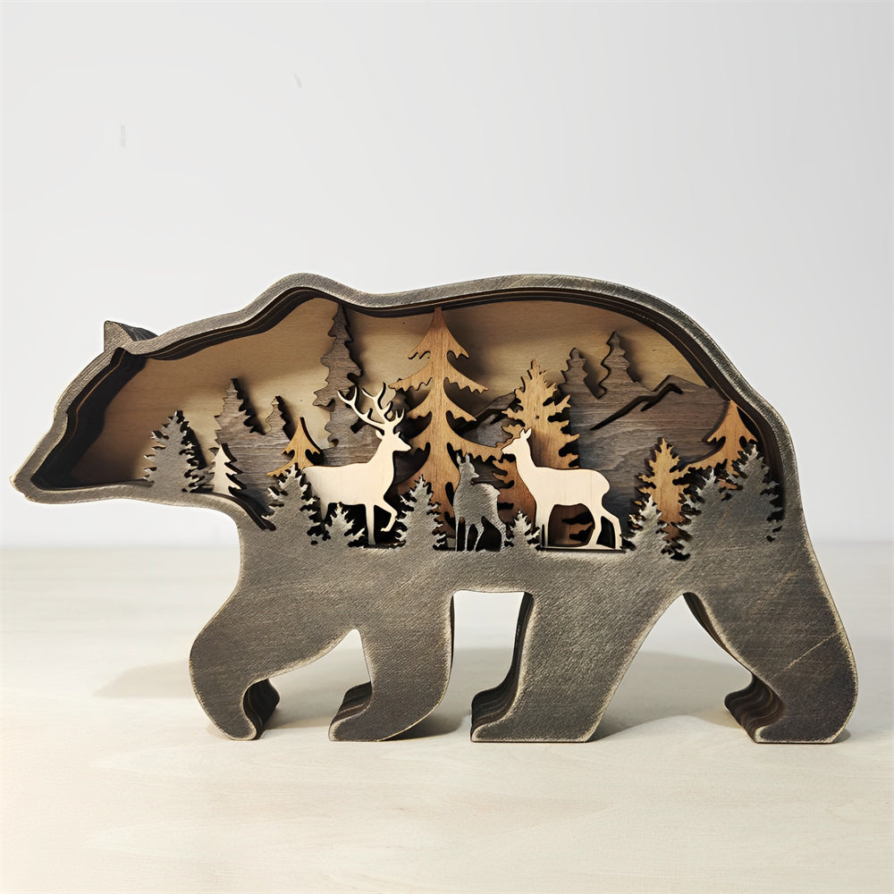 Bear 3D Wooden Carved Ornaments