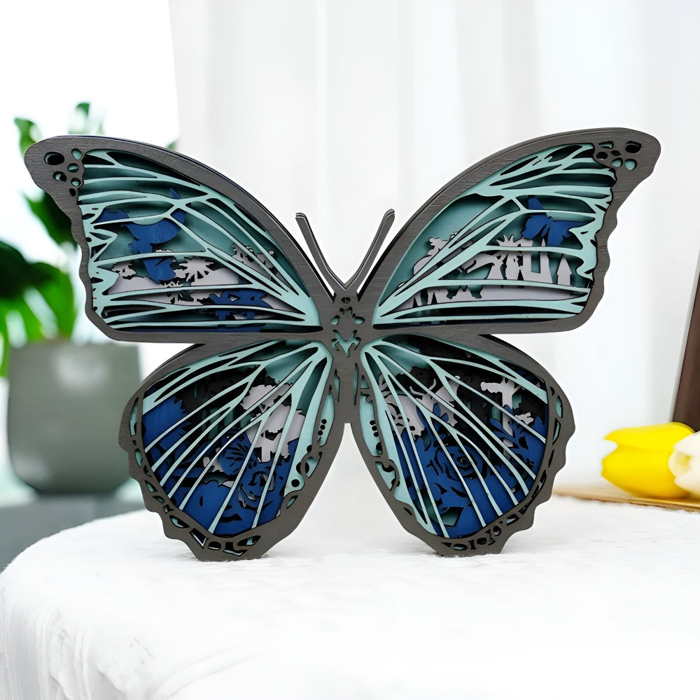 Blue Morpho 3D Wooden Carved Ornaments