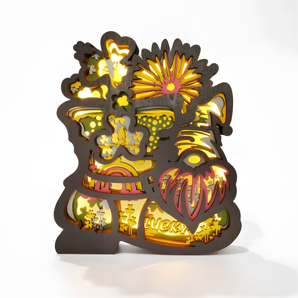 Clover Dwarf Elf 3D Wooden Carved Ornaments