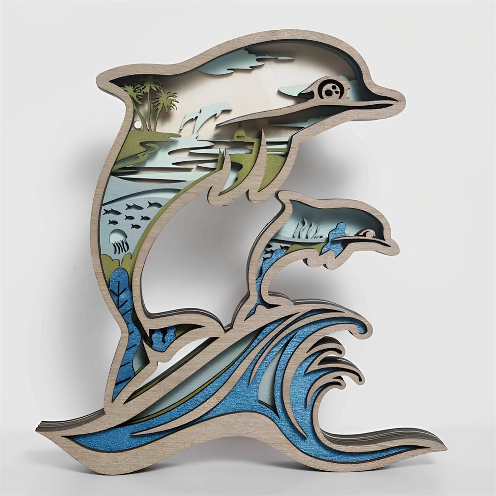 Dolphin 3D Wooden Carved Ornaments