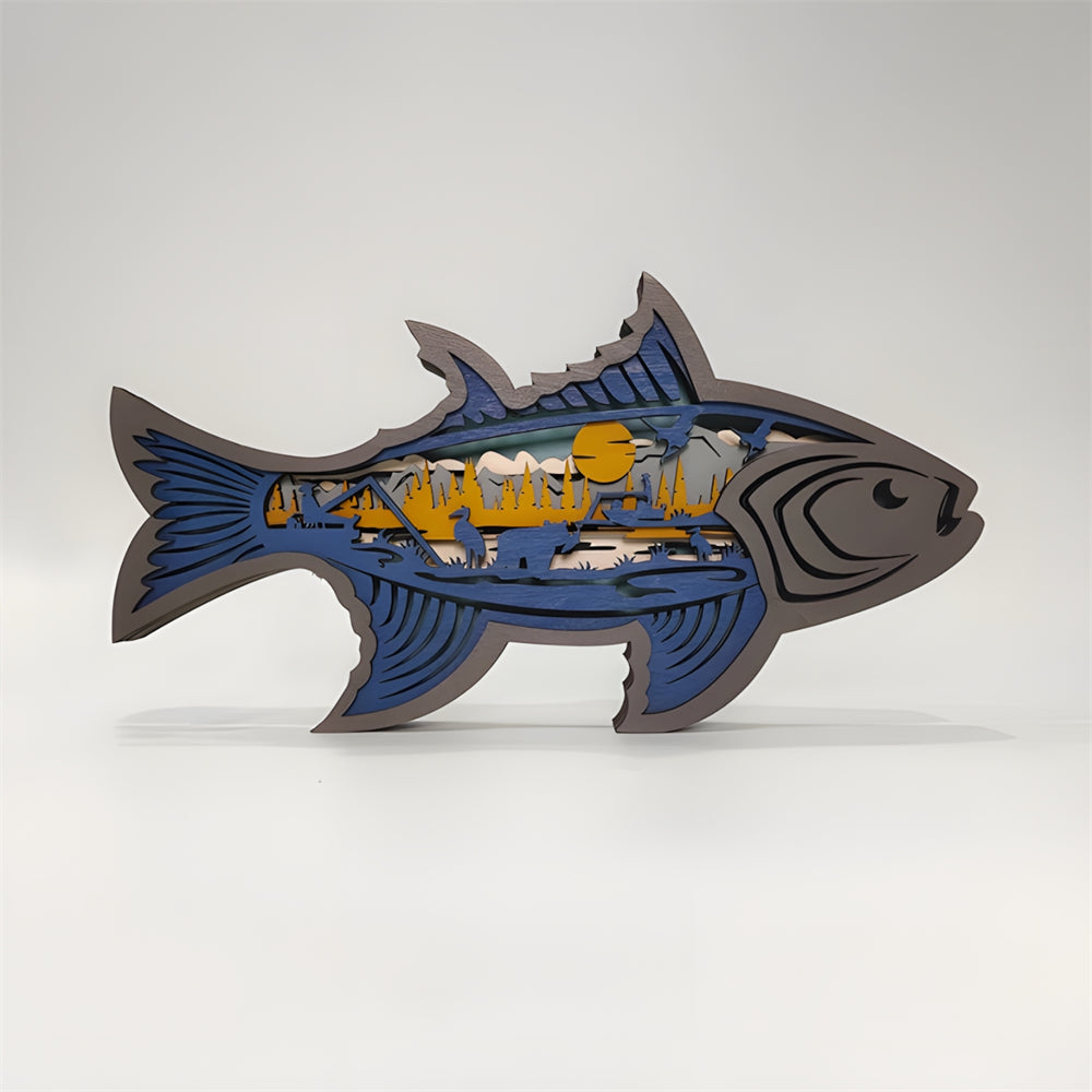 Fish 3D Wooden Carved Ornaments