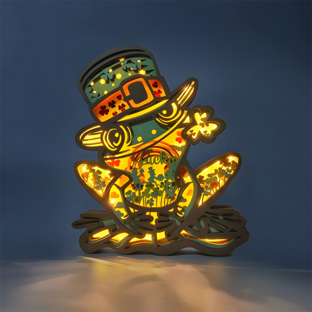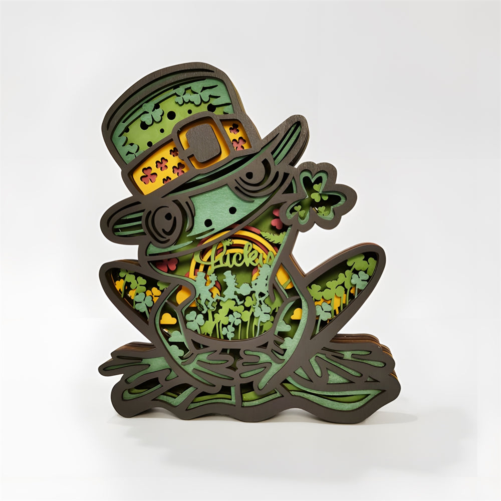 Green Frog 3D Wooden Carved Ornaments