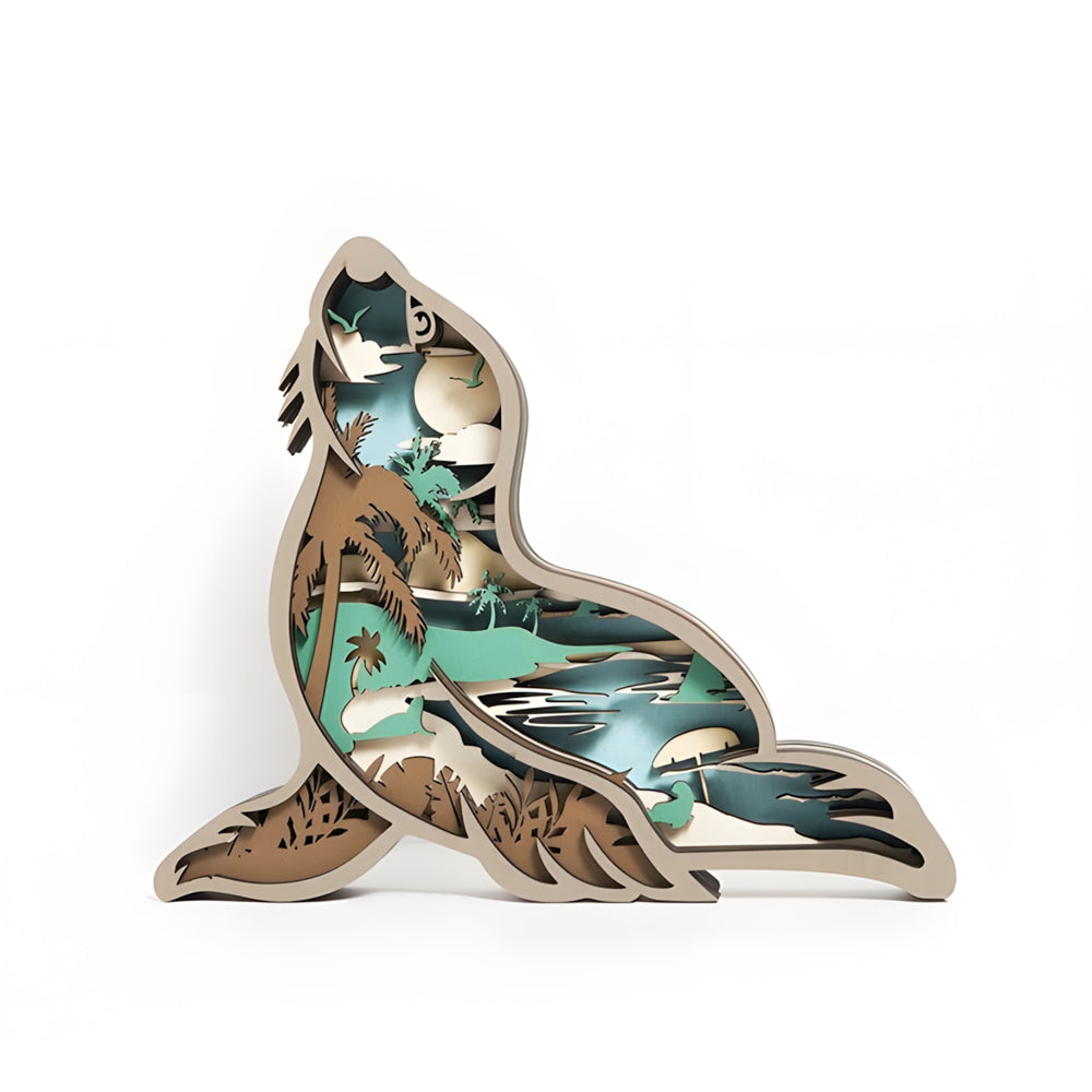 Hawaiian Monk Seal 3D Wooden Carved Ornaments