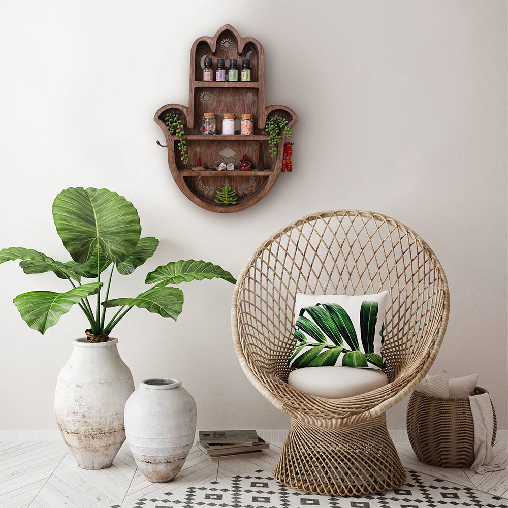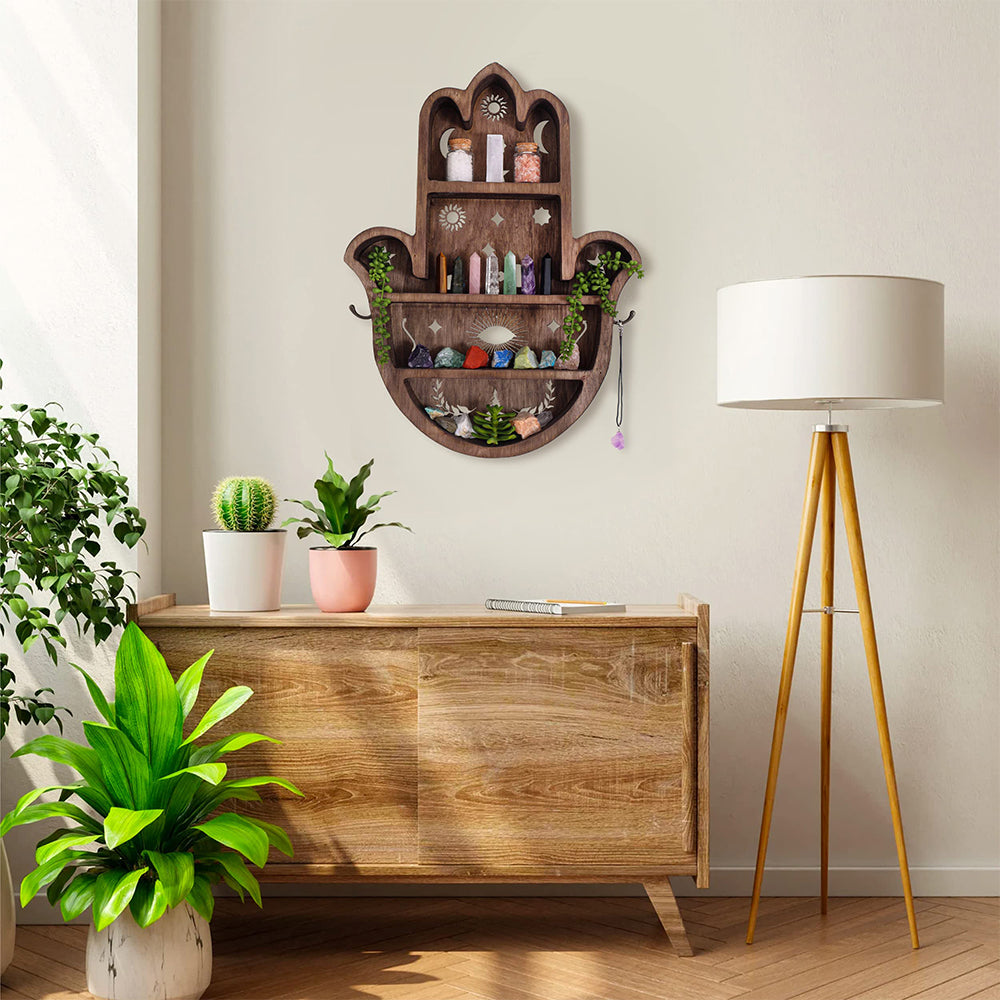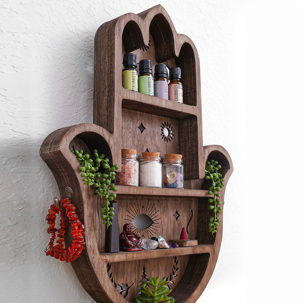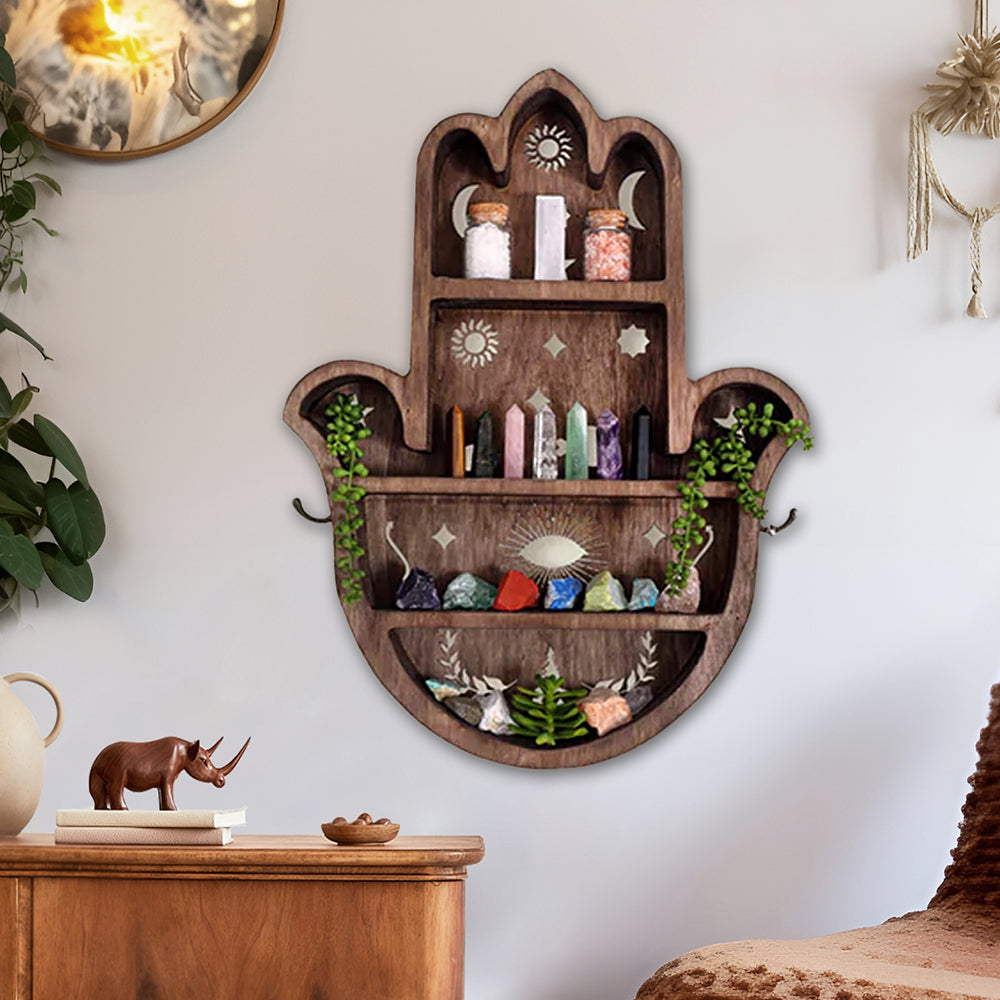 The crystal shelves can display spiritual crystals, essential oils, chakra stones, rocks, succulents, candles, gothic witch hippie spirits, or any other gothic and zen decorations.