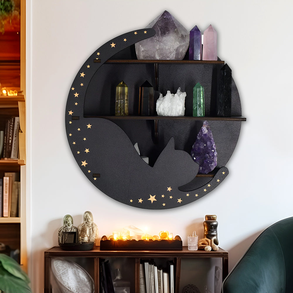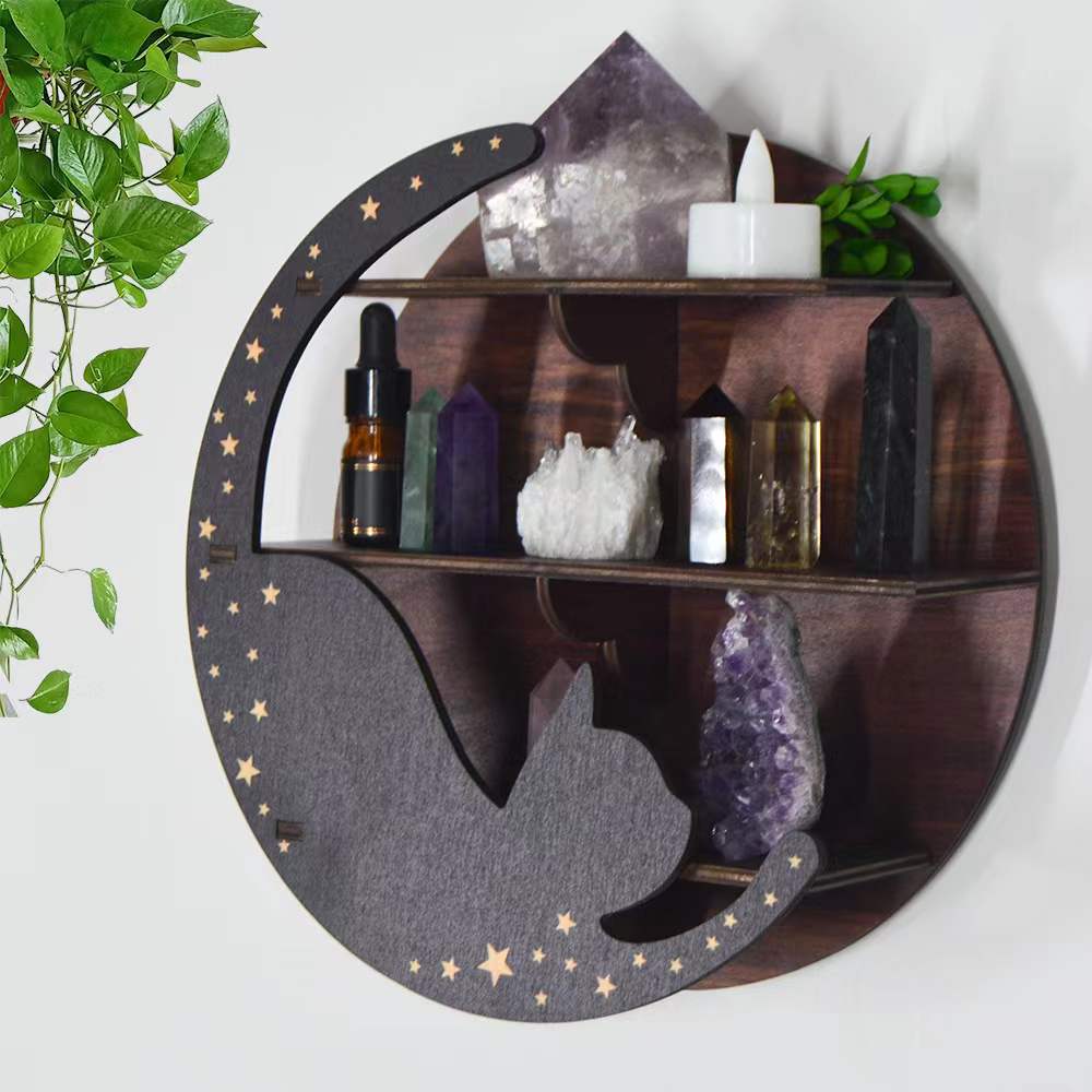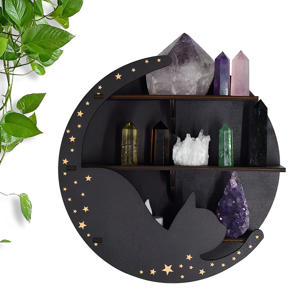 The crystal shelves can display spiritual crystals, essential oils, chakra stones, rocks, succulents, candles, gothic witch hippie spirits, or any other gothic and zen decorations.