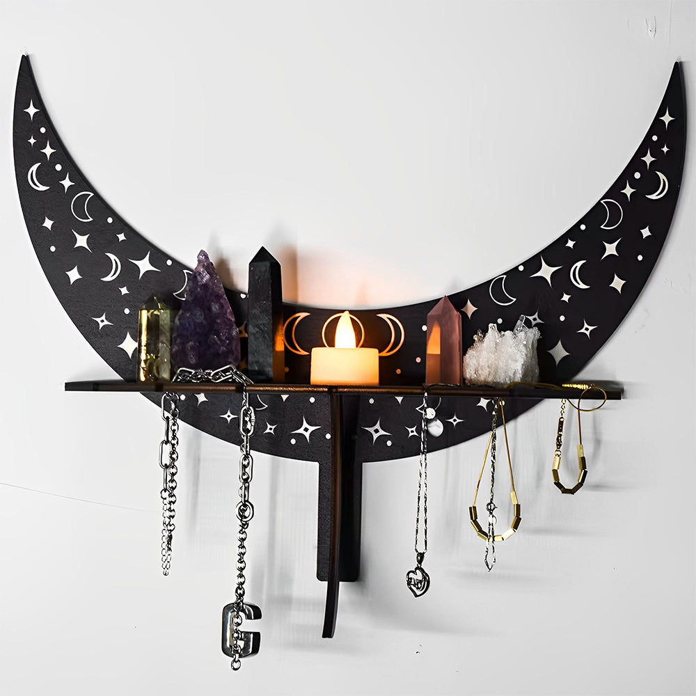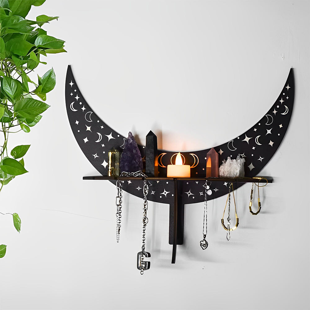 The crystal shelves can display spiritual crystals, essential oils, chakra stones, rocks, succulents, candles, gothic witch hippie spirits, or any other gothic and zen decorations.