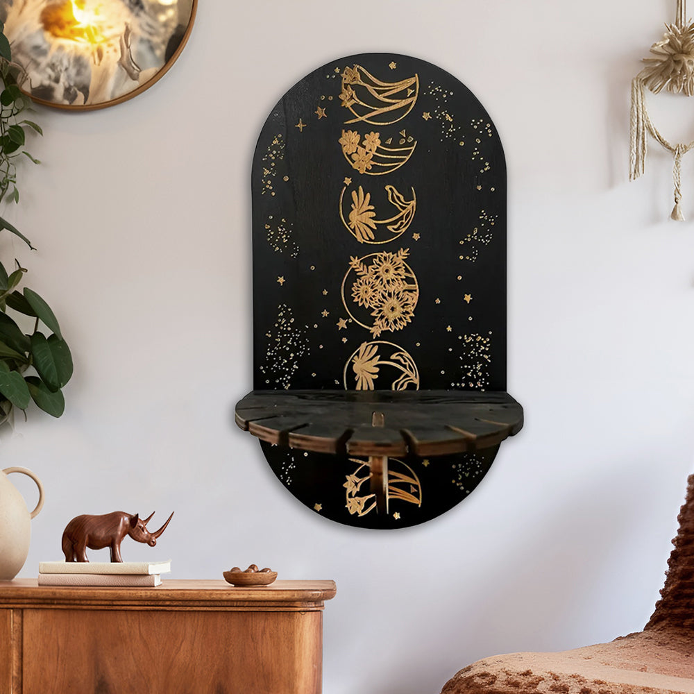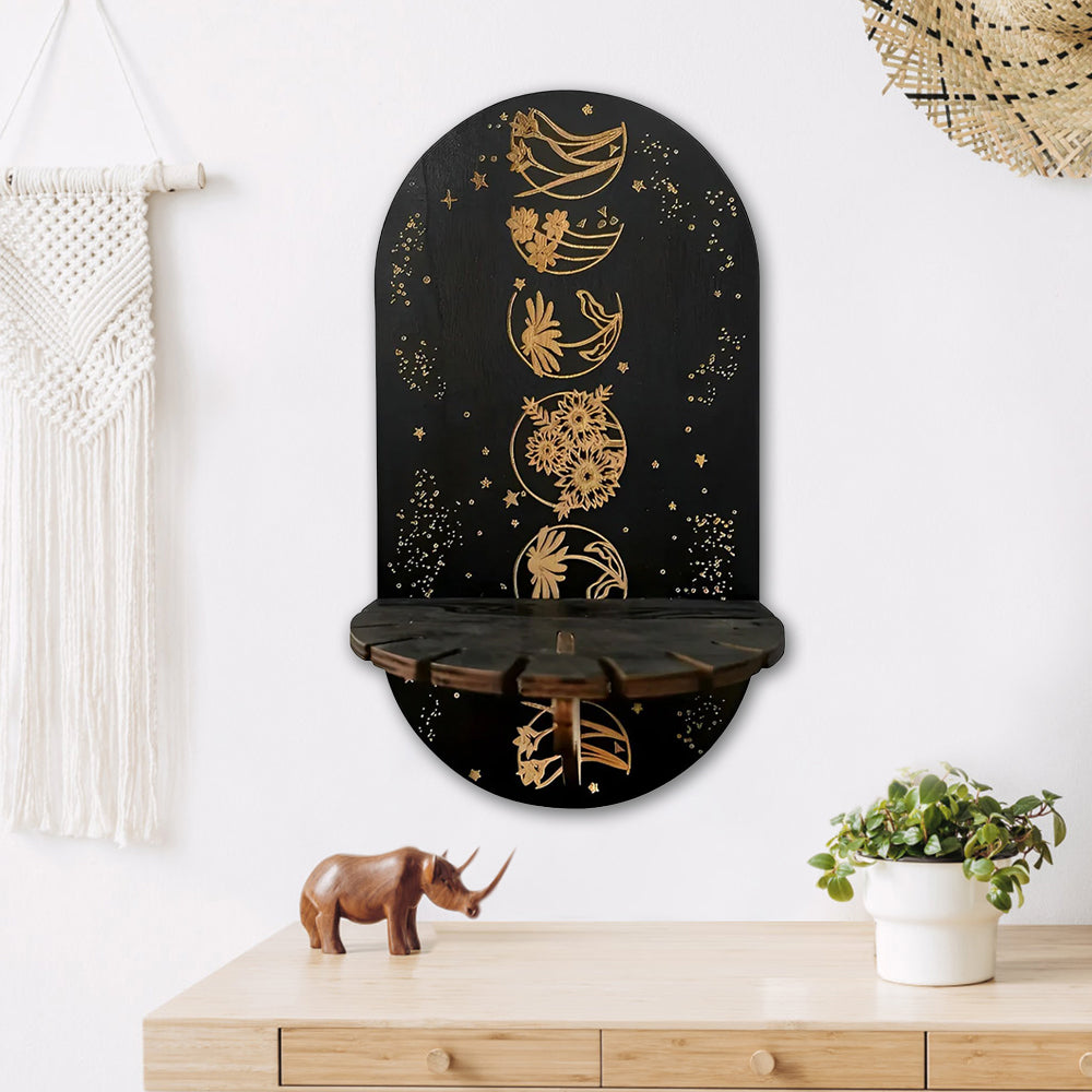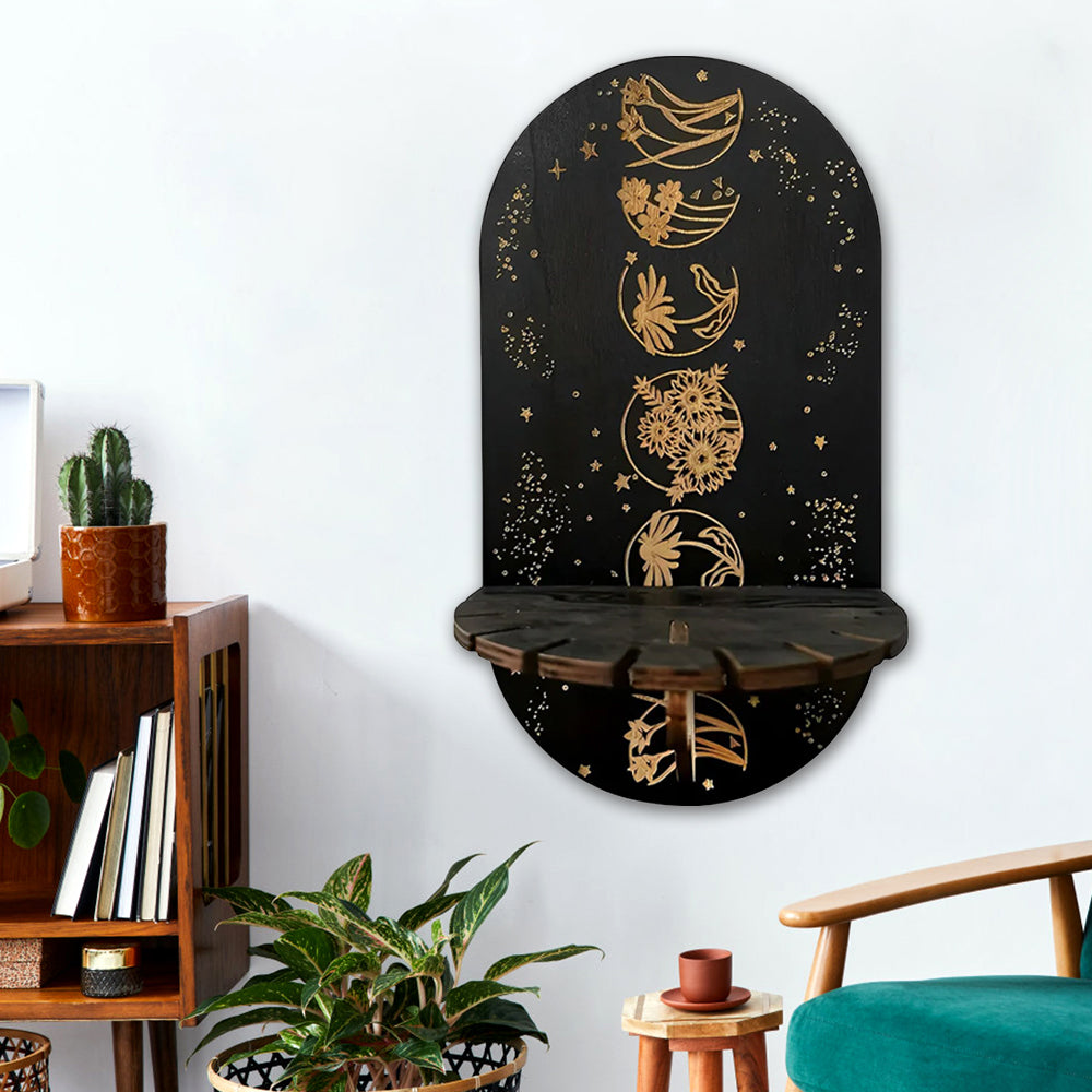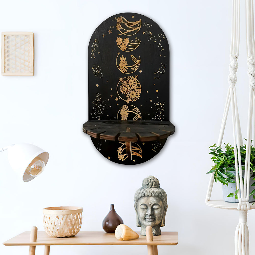 The crystal shelves can display spiritual crystals, essential oils, chakra stones, rocks, succulents, candles, gothic witch hippie spirits, or any other gothic and zen decorations.