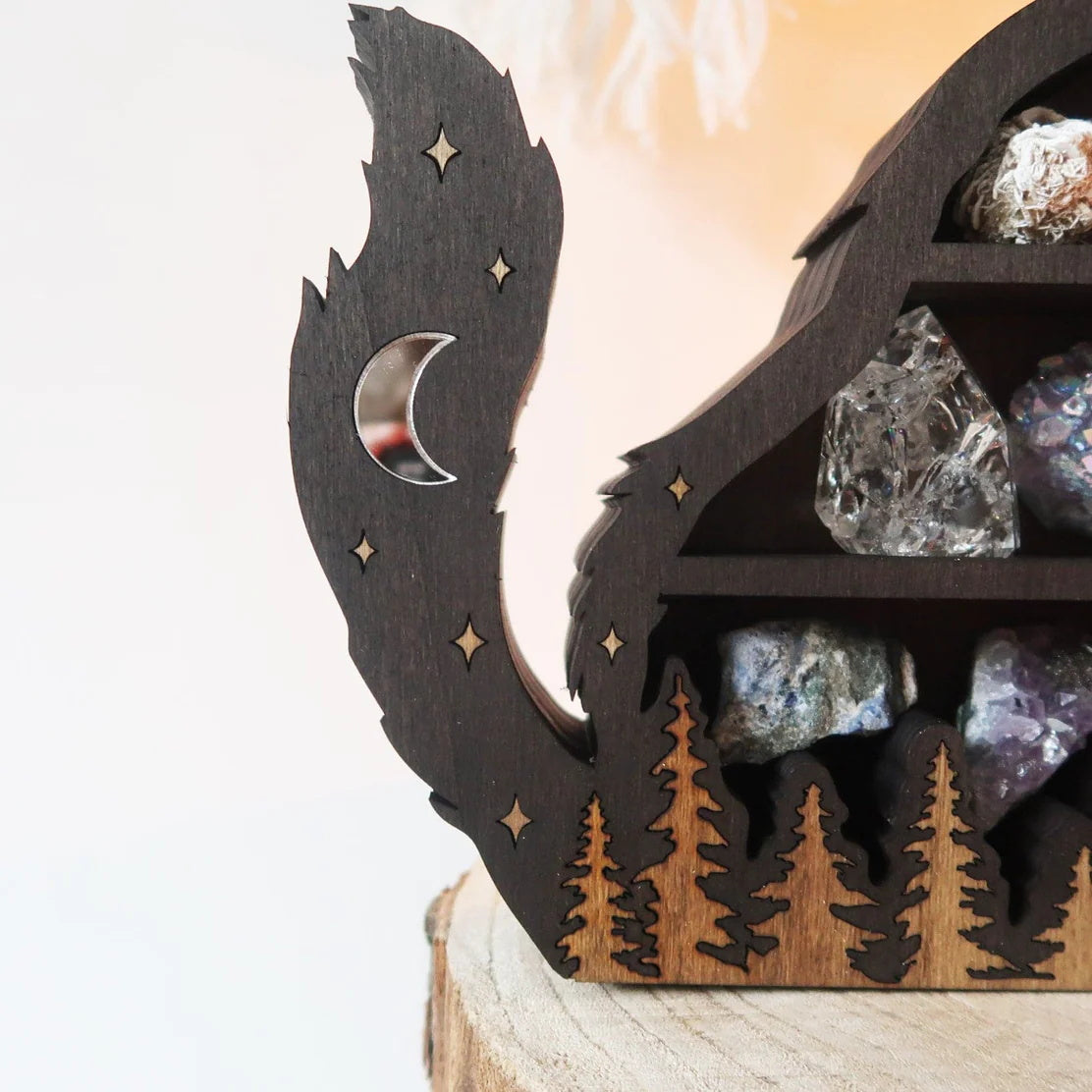 The crystal shelves can display spiritual crystals, essential oils, chakra stones, rocks, succulents, candles, gothic witch hippie spirits, or any other gothic and zen decorations.