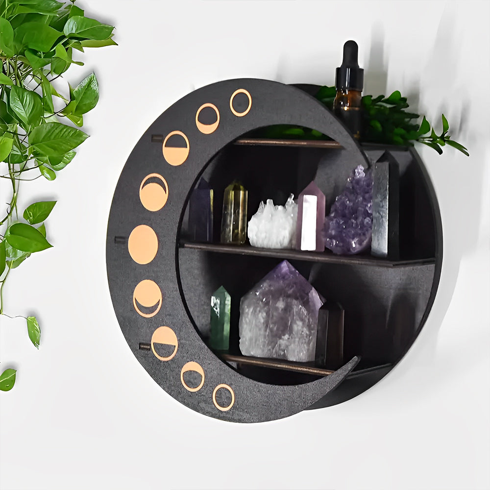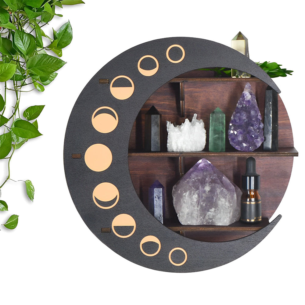 The crystal shelves can display spiritual crystals, essential oils, chakra stones, rocks, succulents, candles, gothic witch hippie spirits, or any other gothic and zen decorations.